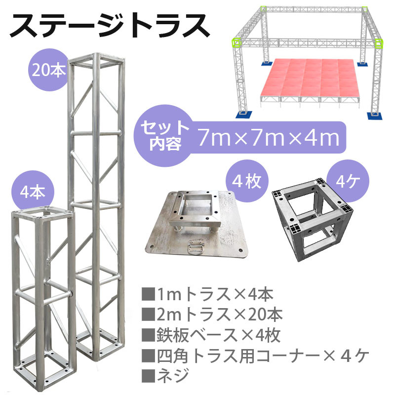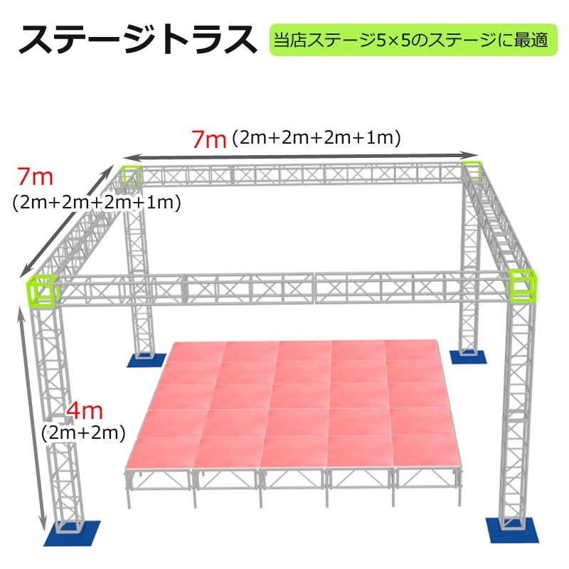 トラスセット ステージトラス 7×7×4m 軽量 アルミ 高4m|仮設 コンサート ステージ 朝礼台 指揮台 演台 演壇 折り畳み アルミ 折りたたみステージセット 舞台 イベント ステージ台 講演会 発表会 祭 行事 ポータブル 野外ステージ 組立 施設 学校 イベントステージ ライブ 学園祭 ミニトラス 四角トラス ステージ・舞台・イベントの演出 簡易ステージ ステージトラス レンタル コンパクト ポータブルステージ 軽量 堅牢 アルミ製トラス