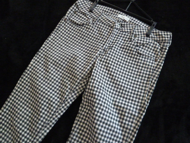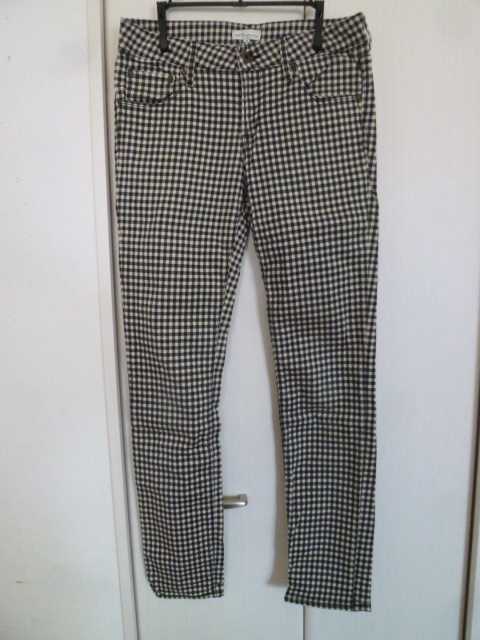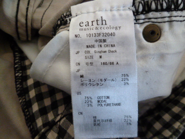 earth music&ecology/アースミュージック&エコロジー△ライトベージュ×ブラックギンガムチェックストレッチスキニーパンツM/スリム△P36