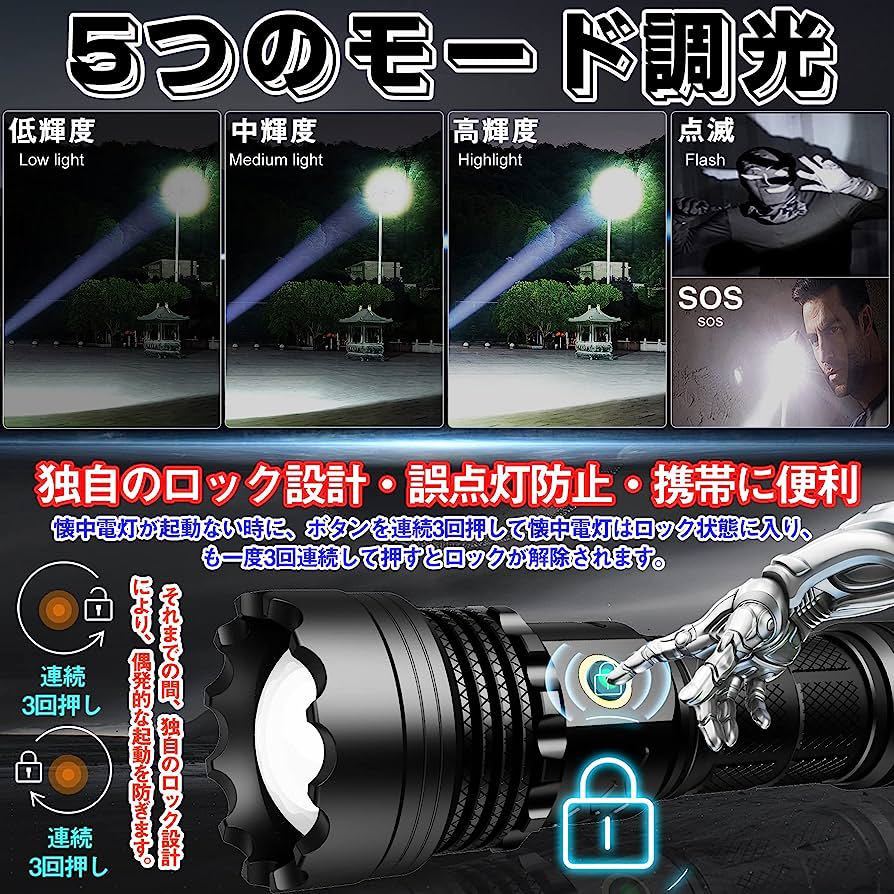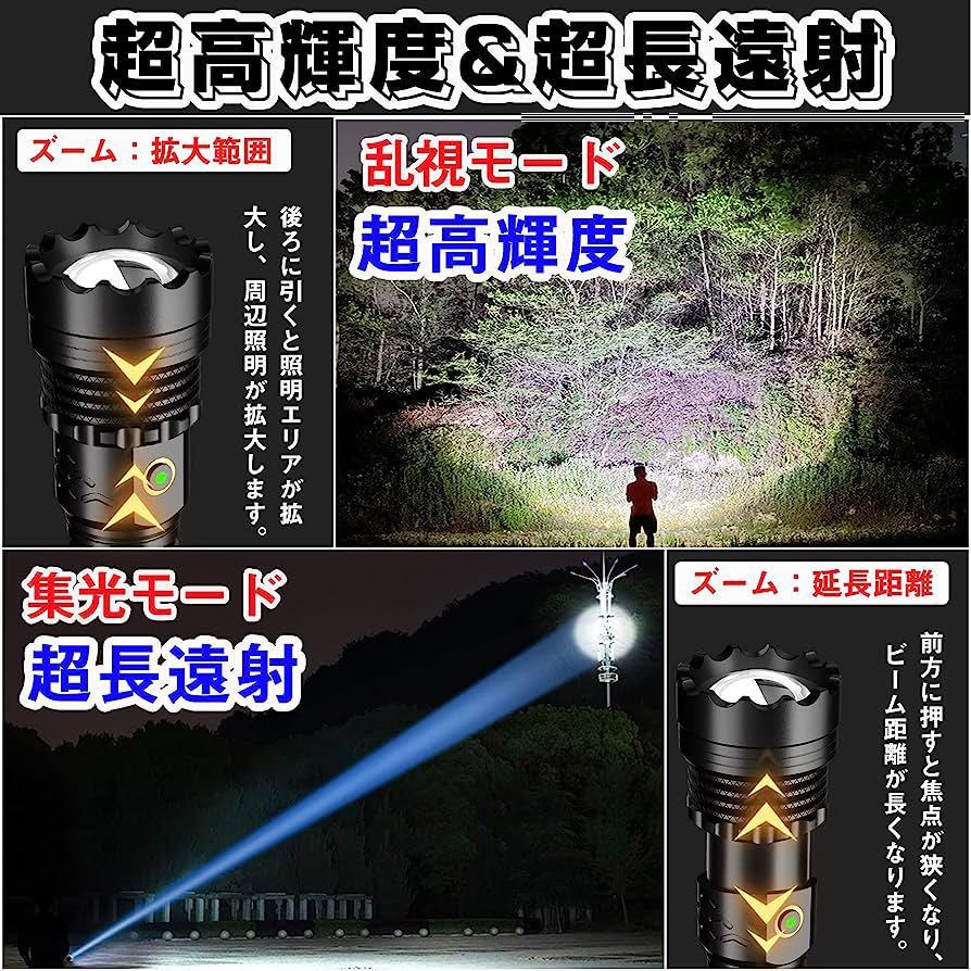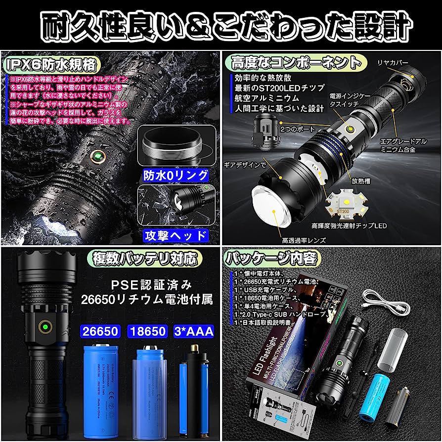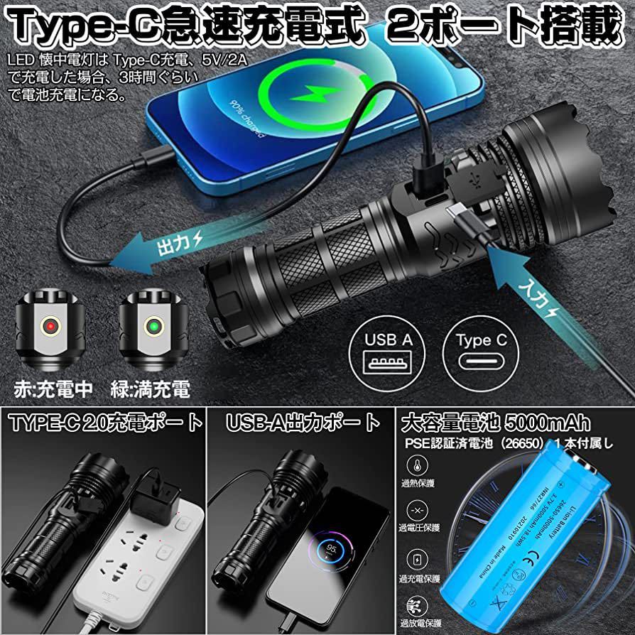 最新型強化版 超高輝度 led 】懐中電灯 led 強力 軍用 最強 ハンドライト 高輝度 超長遠射 2.0 Type-C USB急速充電式 led ライト 超強力 充電 電池式 flashlight 明るい ライト ハンディライト フラッシュライト 新型 軽量 長時間使用 手持ちライト 携帯ライト 軍用ライト かいちゅうでんとう 誤点灯防止 ズーム5モード調光 作業用ライトIPX6防水 2.5M耐衝撃 日常の持ち運び、防災、防犯、地震、災害、停電対策などのシーンに適です さらに 登山 夜釣り キャンプ 探検 点検 巡視 作業にも便利です: Aicdas