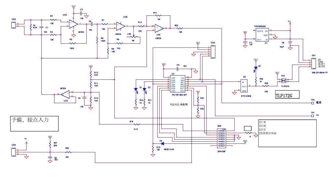 LM324: 2段増幅、基準電圧生成、波形整形用