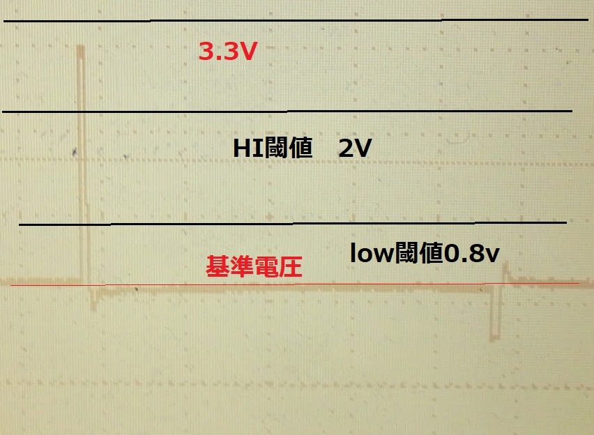 立下りにおいて基準電圧より大きい正波形と小さい負波形