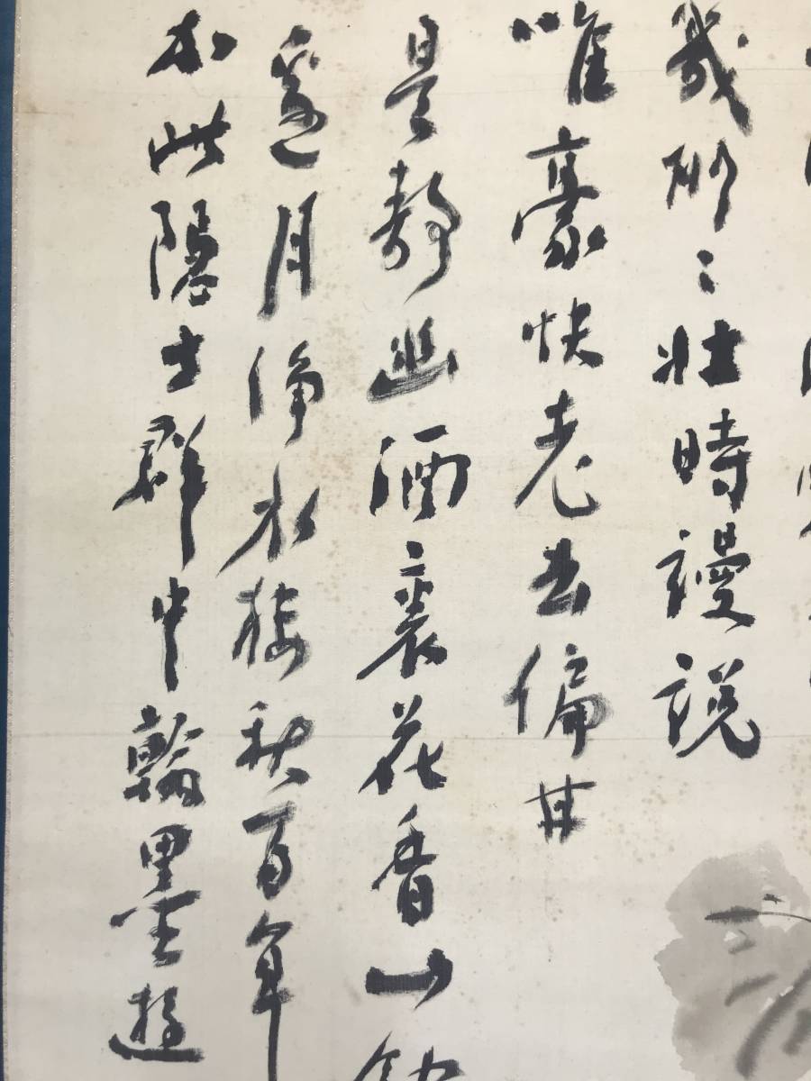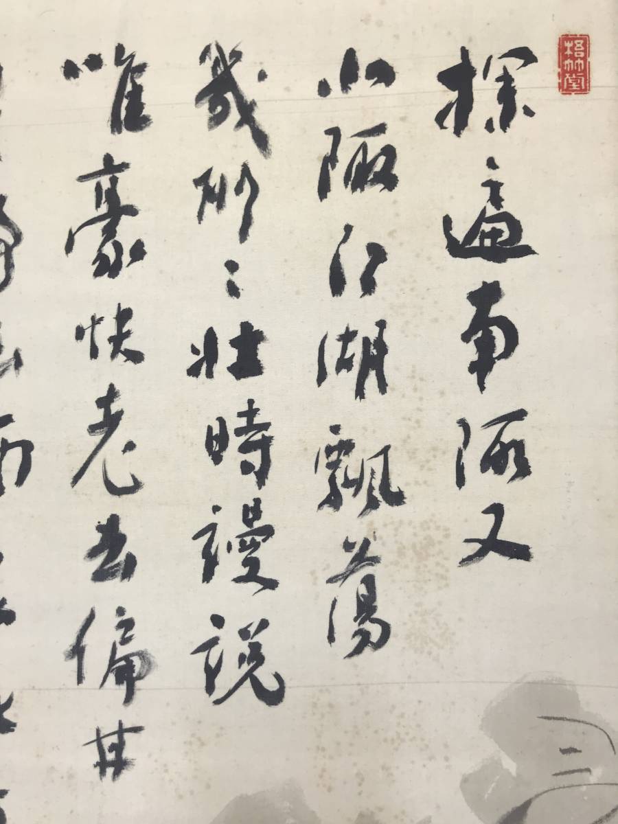 【作品状態】本紙は絹本肉筆です。 本紙は薄汚れ、全体に多数の糊シミあります。表装は絹表装で概ね良好です。