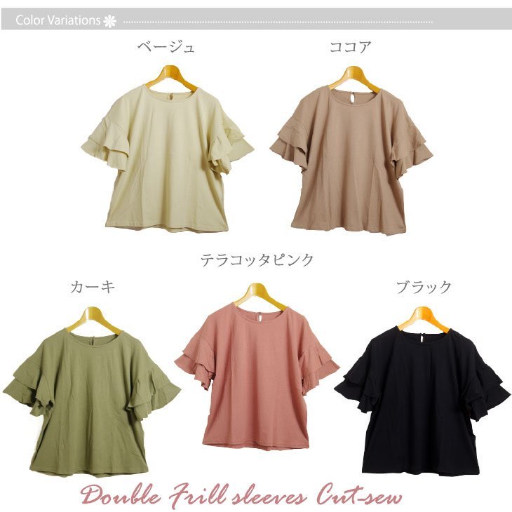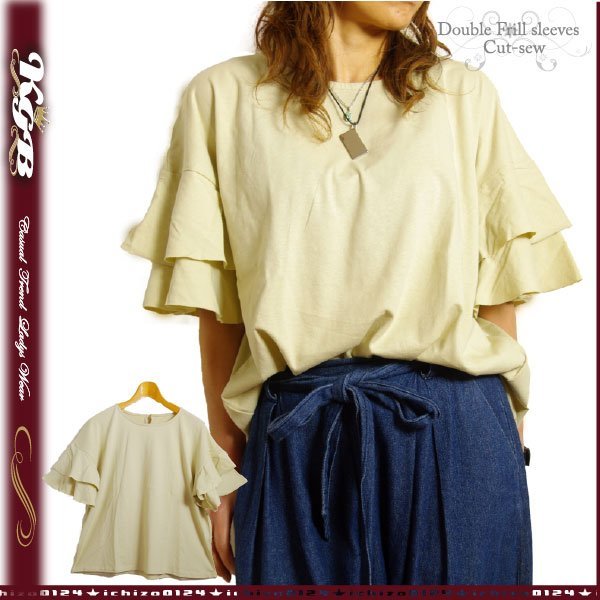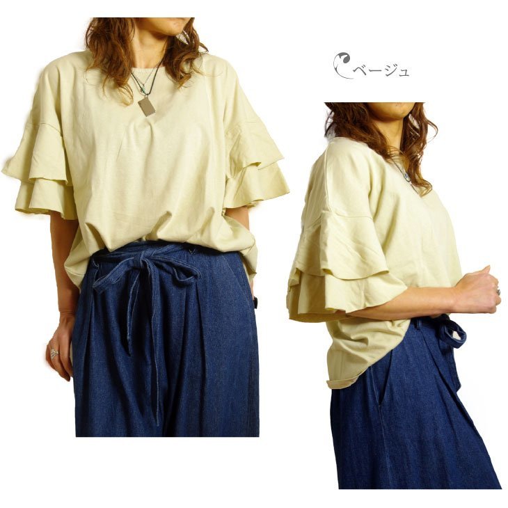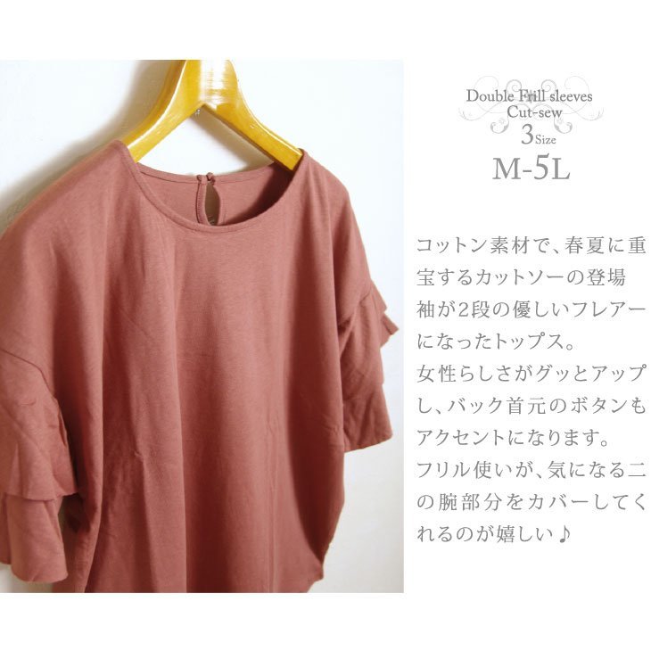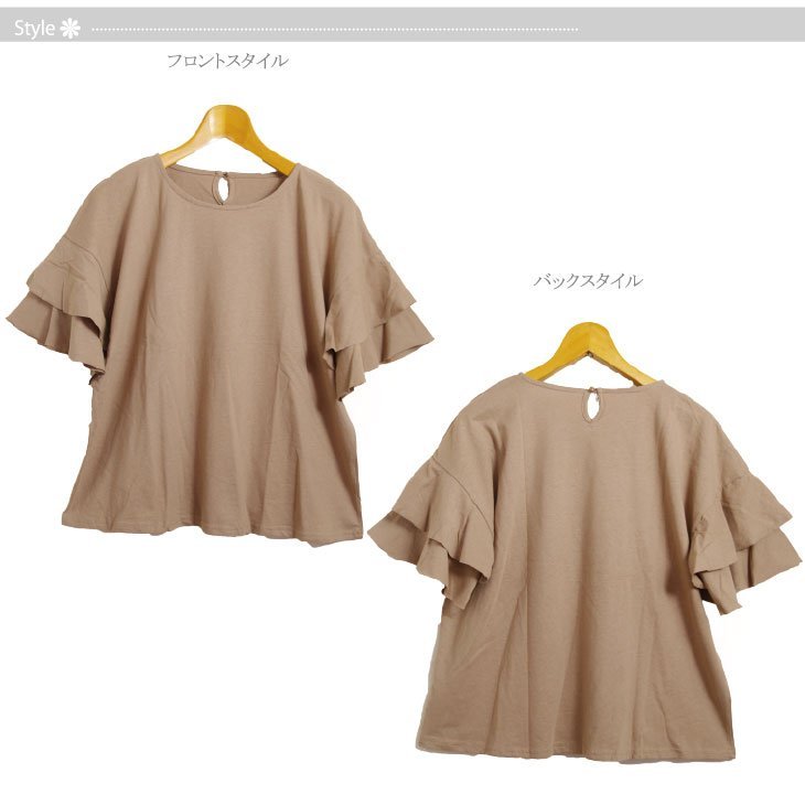 4L~5L カットソー 半袖 レディース ダブルフリル袖 Tシャツ ベージュ 新品