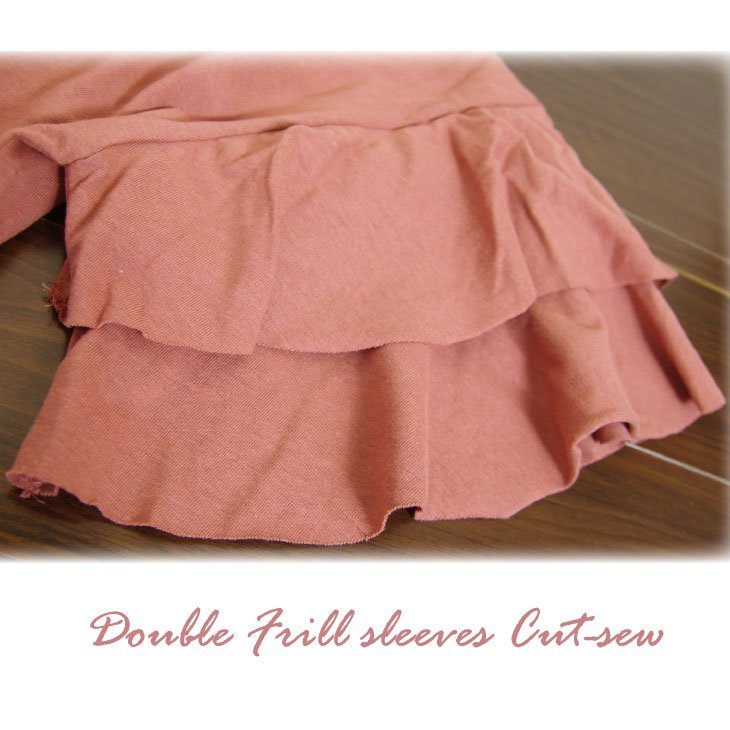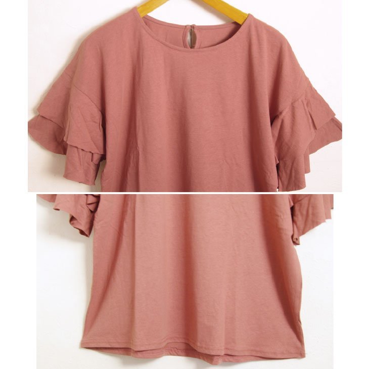 ★コットン素材で、春夏に重宝するカットソーの登場 袖が2段の優しいフレアーになったトップス。