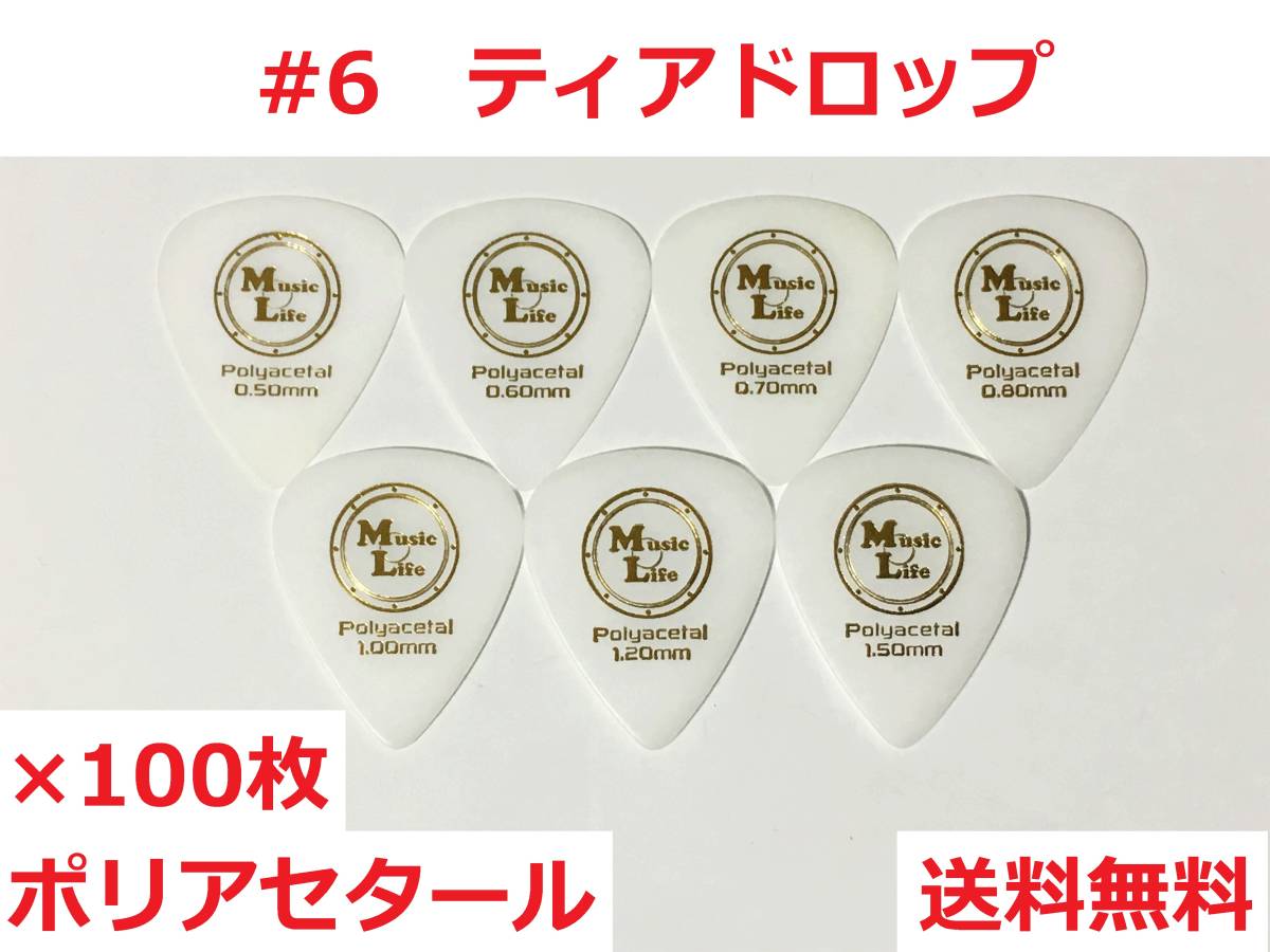 【1.00mm×100枚】ティアドロップ ポリアセタール MLピック #6【送料無料】