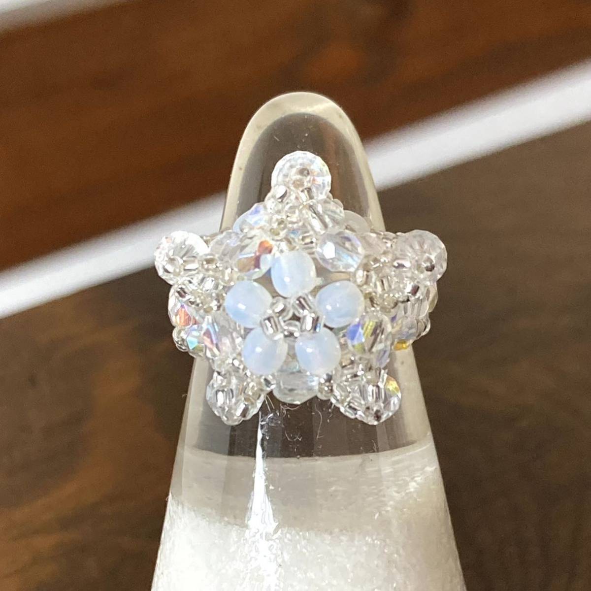 チェコビーズで星の形を作った可愛いデザインのリングです♪