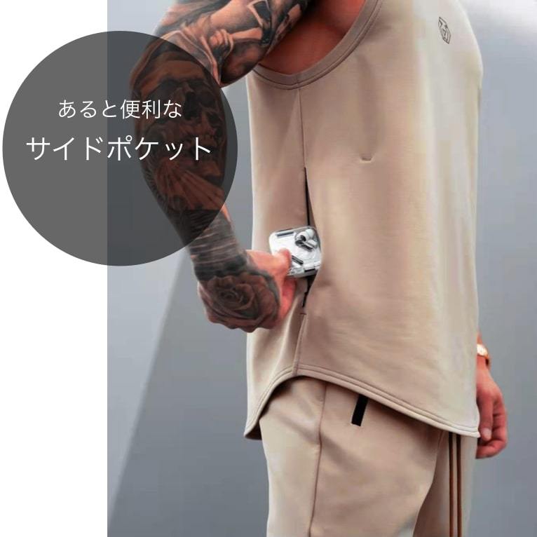 【ポイント】便利なサイドポケットにより必要アイテムをスマートに収納出来ます。吸汗速乾 メンズ タンクトップ、トレーニングTシャツ、袖なしジムウェア、ノースリーブアンダーシャツ、カッコイイ。