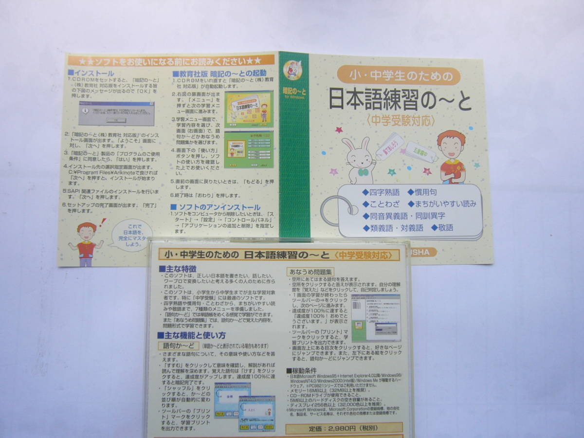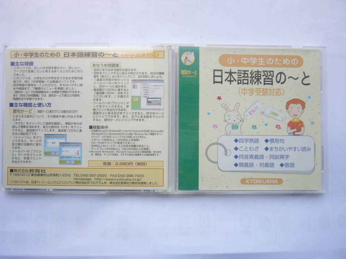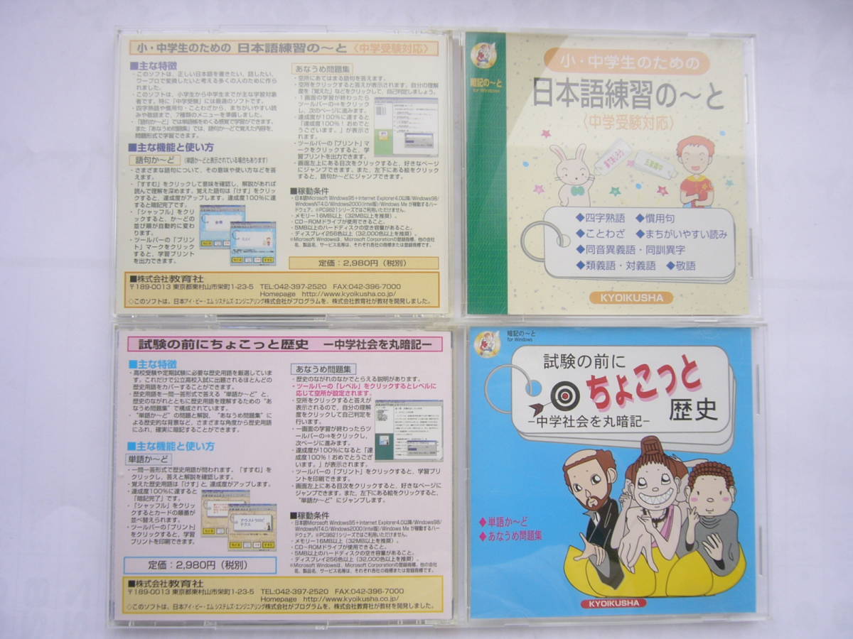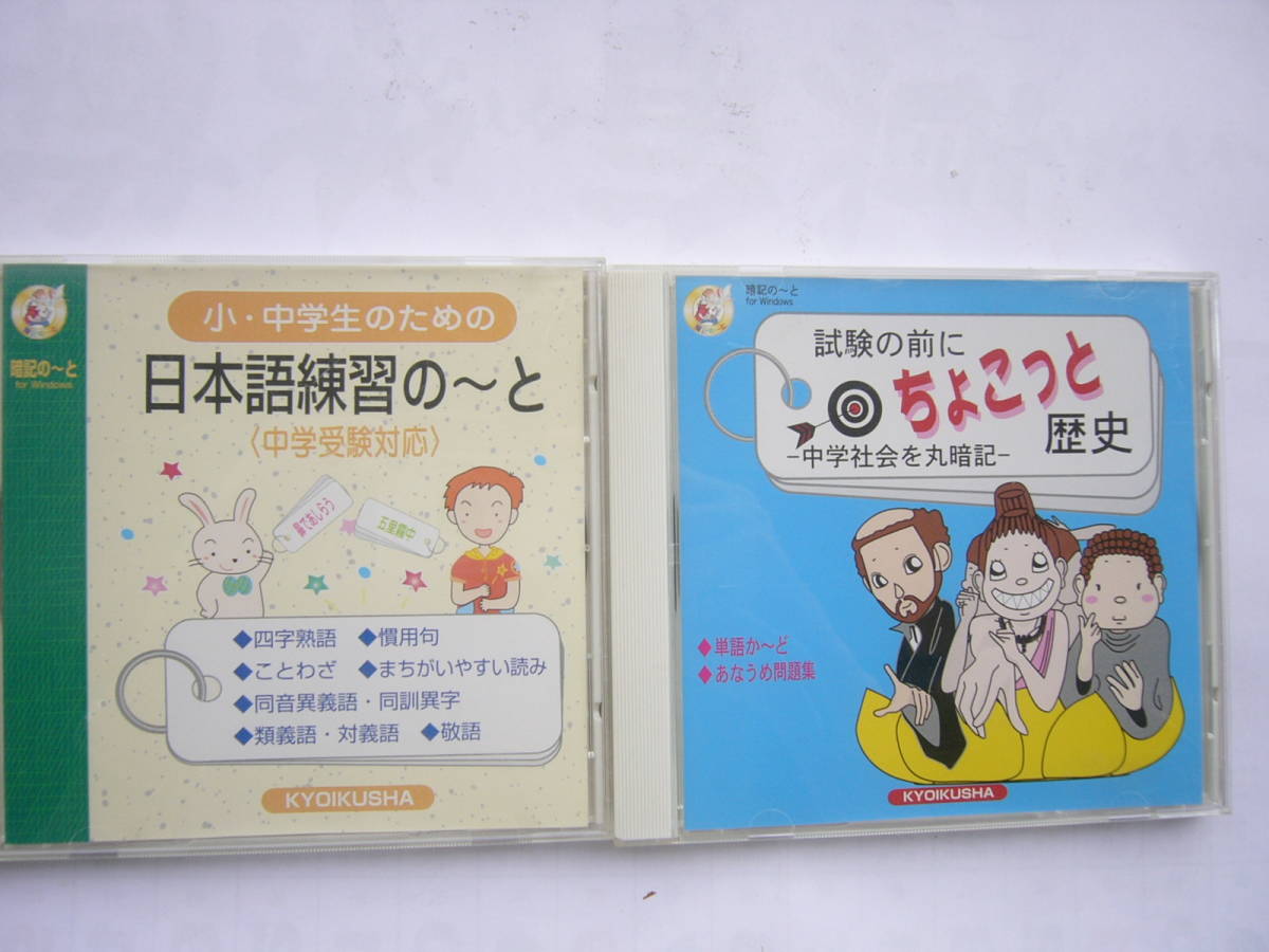 学習ソフト/Win&Mac用/ KYOIKUSHA セット 「小・中学生のための日本語練習の~と {中学受験対応}」 + 「試験の前に ちょこっと歴史 ー中学社会を丸暗記ー」 /KYOIKUSHA/ 冊子なし(表紙のみ) | |||||||||||