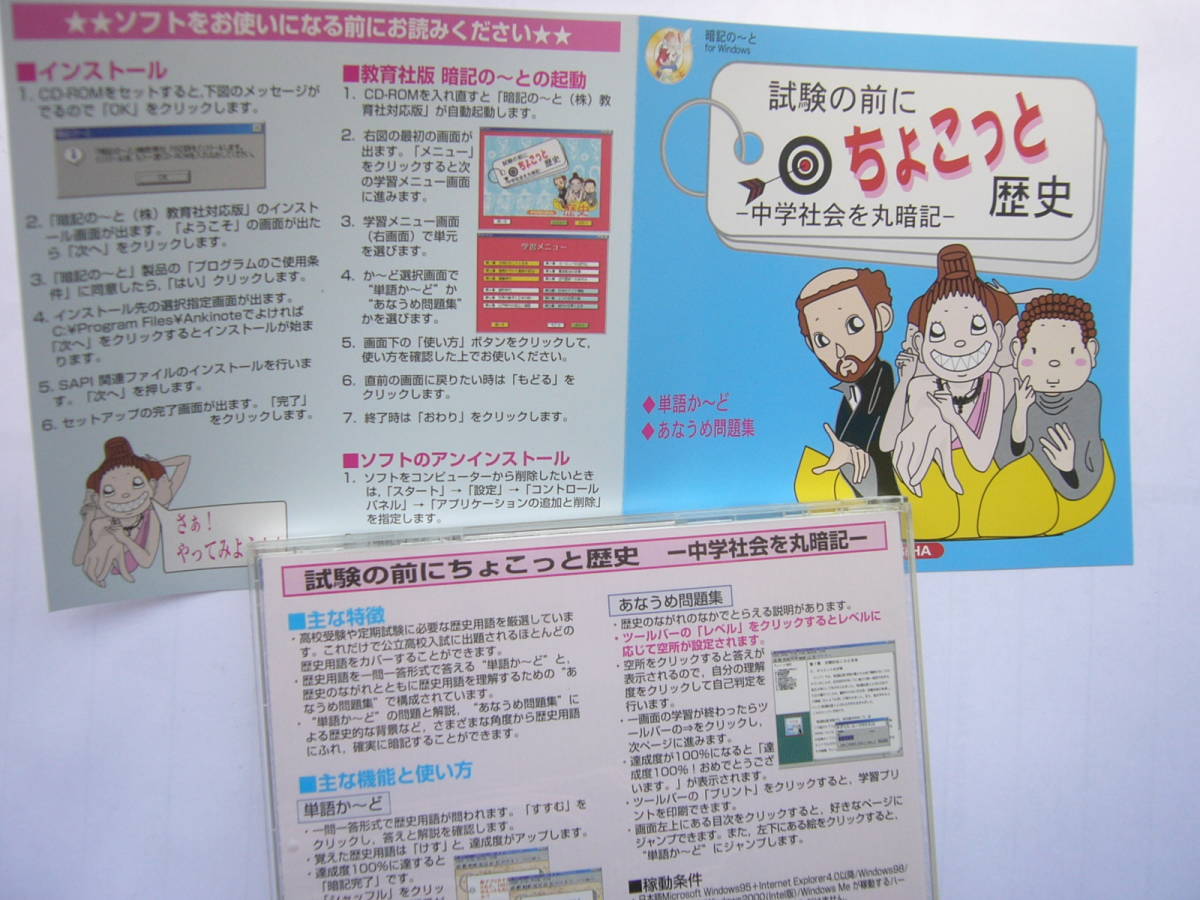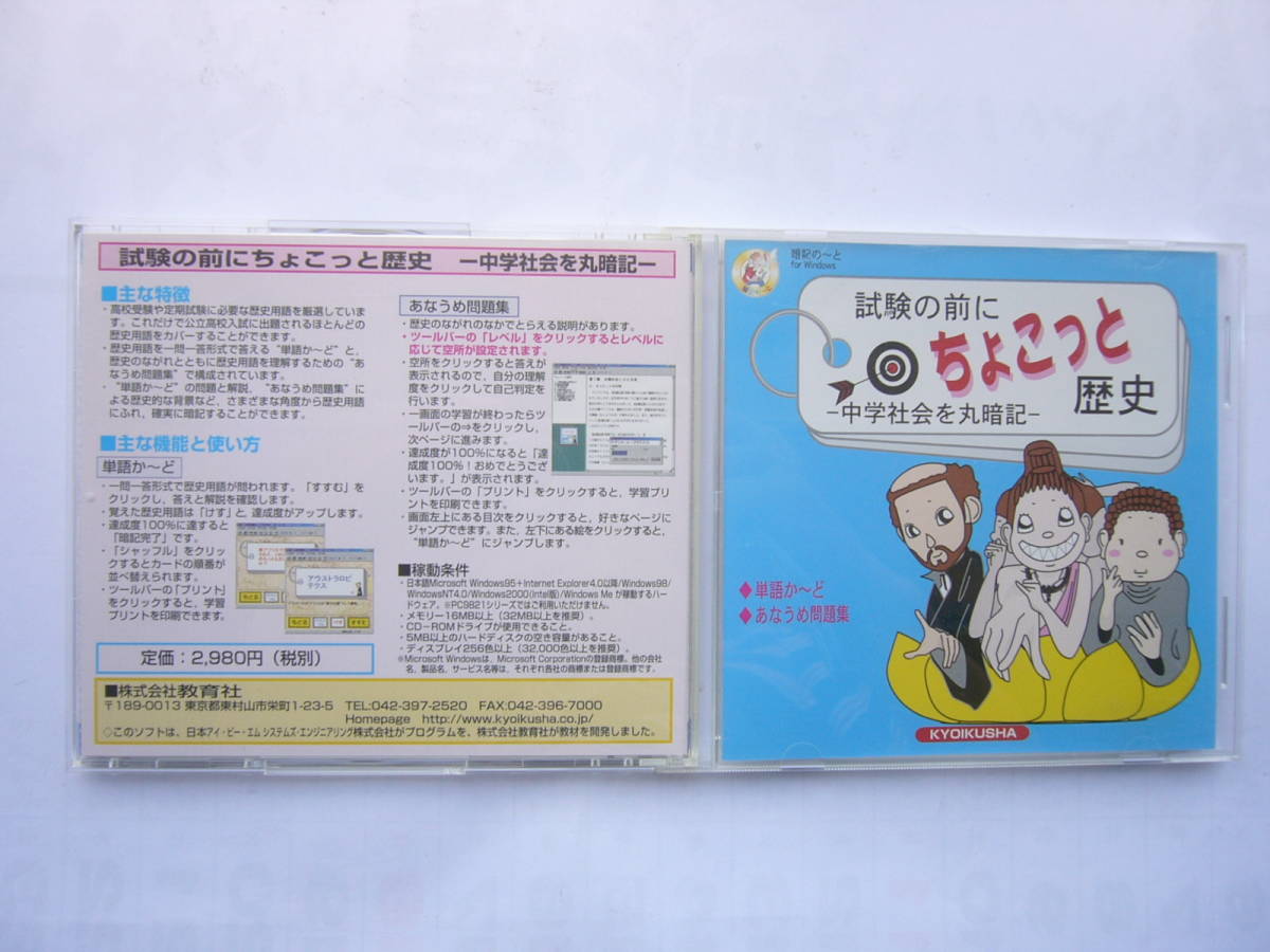 学習ソフト/Win&Mac用/試験の前にちょこっと歴史ー中学社会を丸暗記ー/KYOIKUSHA/冊子なし(表紙のみ) | |||||