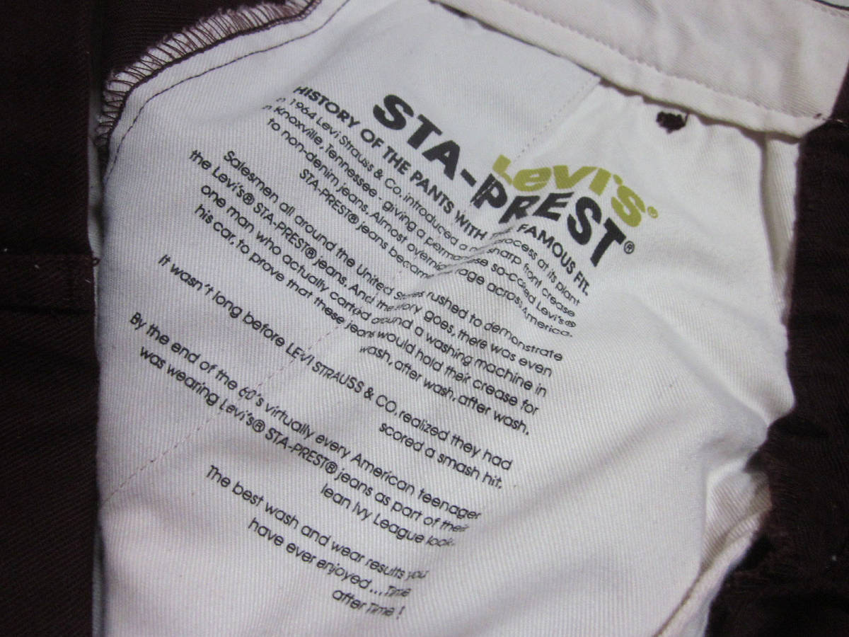 送料無料!! LEVI'S PREMIUM リーバイス プレミアム WATERLESS STA-PREST スタプレ 黒タグ ストレッチパンツ ボルドー 30 W約76CM