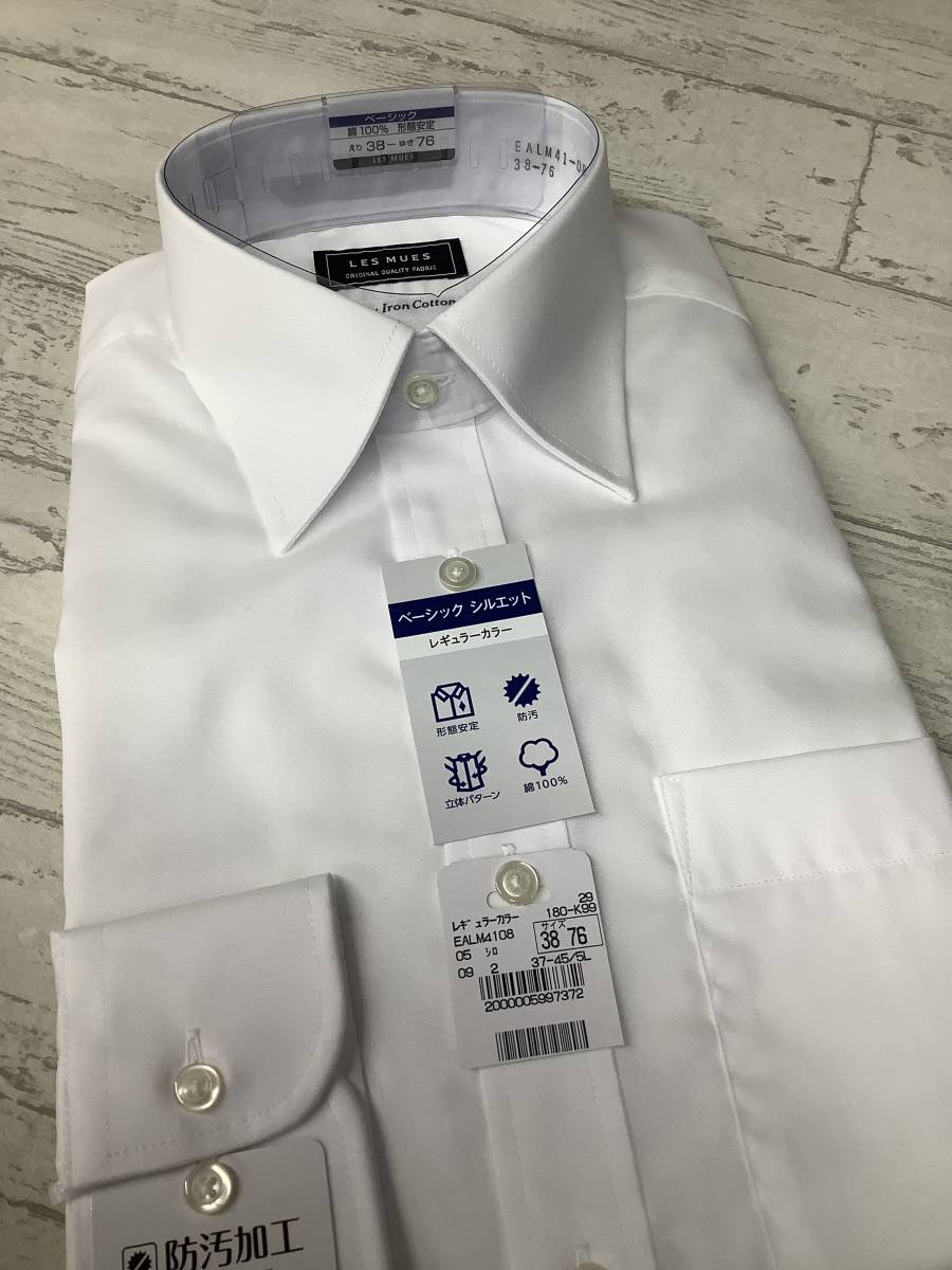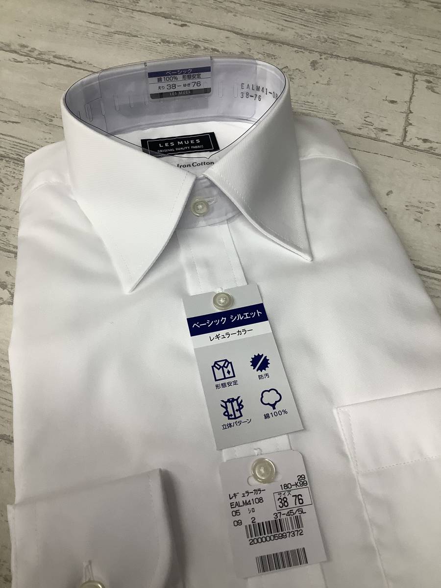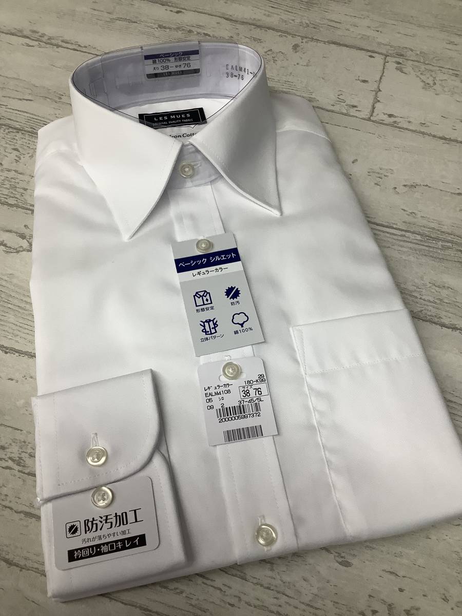 新品 38-76長袖Mサイズ ★白レギュラードレスシャツ 綿100% ☆冠婚葬祭にも!サービス