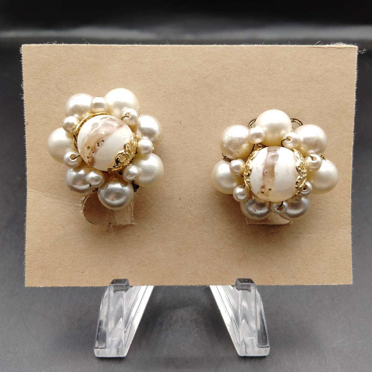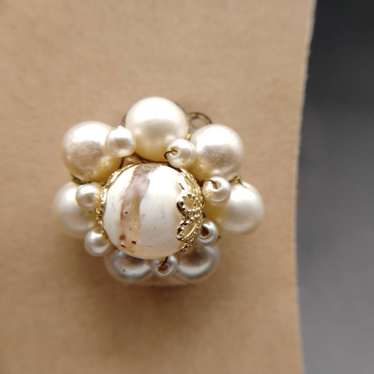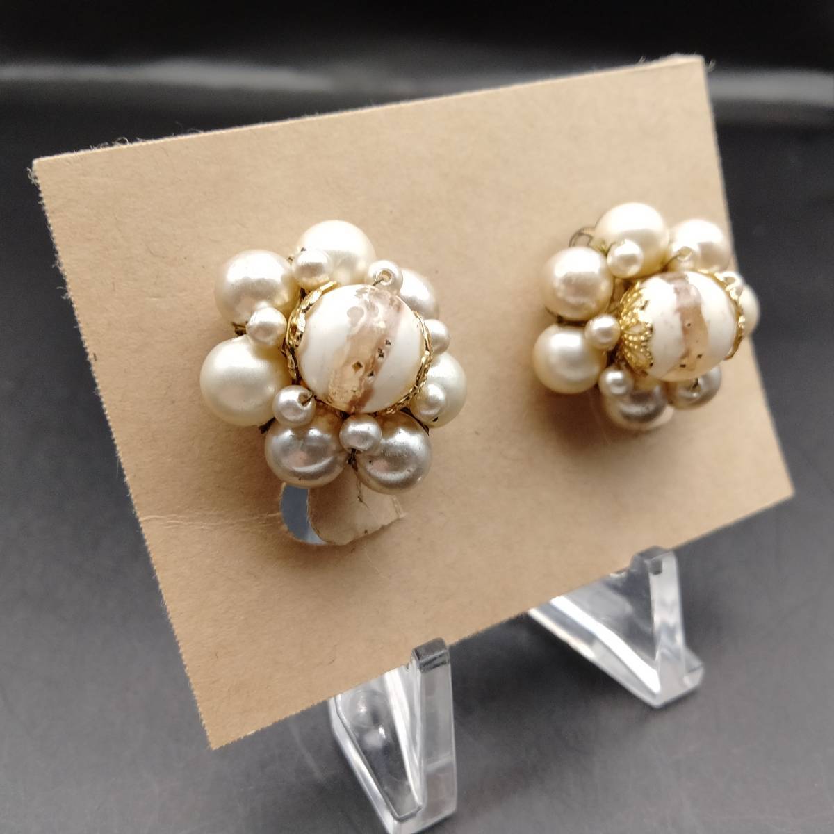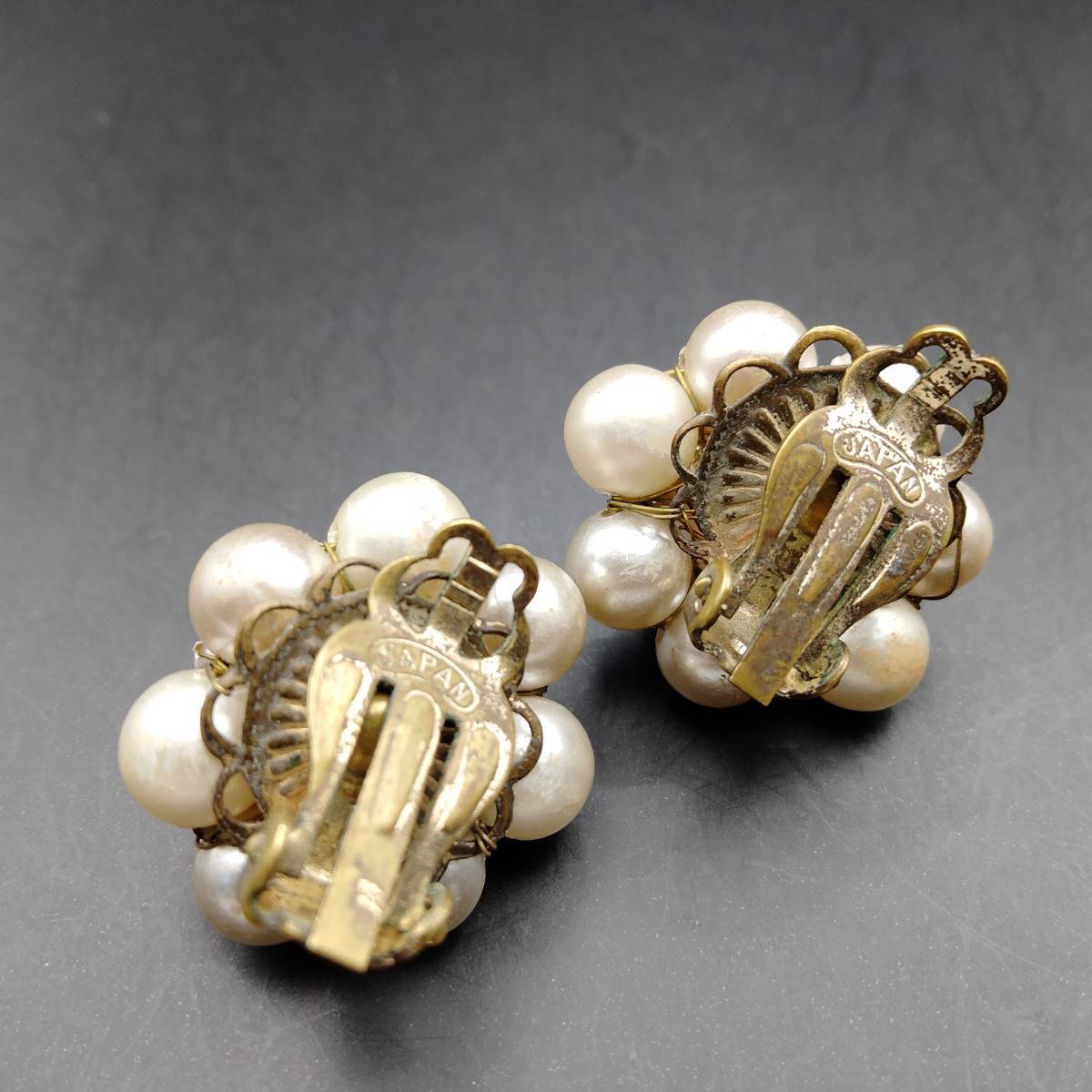 Japan ビンテージ ホワイト フェイク パール フラワー ピアス イヤリング アールデコ 昭和レトロ コスチューム ジュエリー 輸入 SAA①