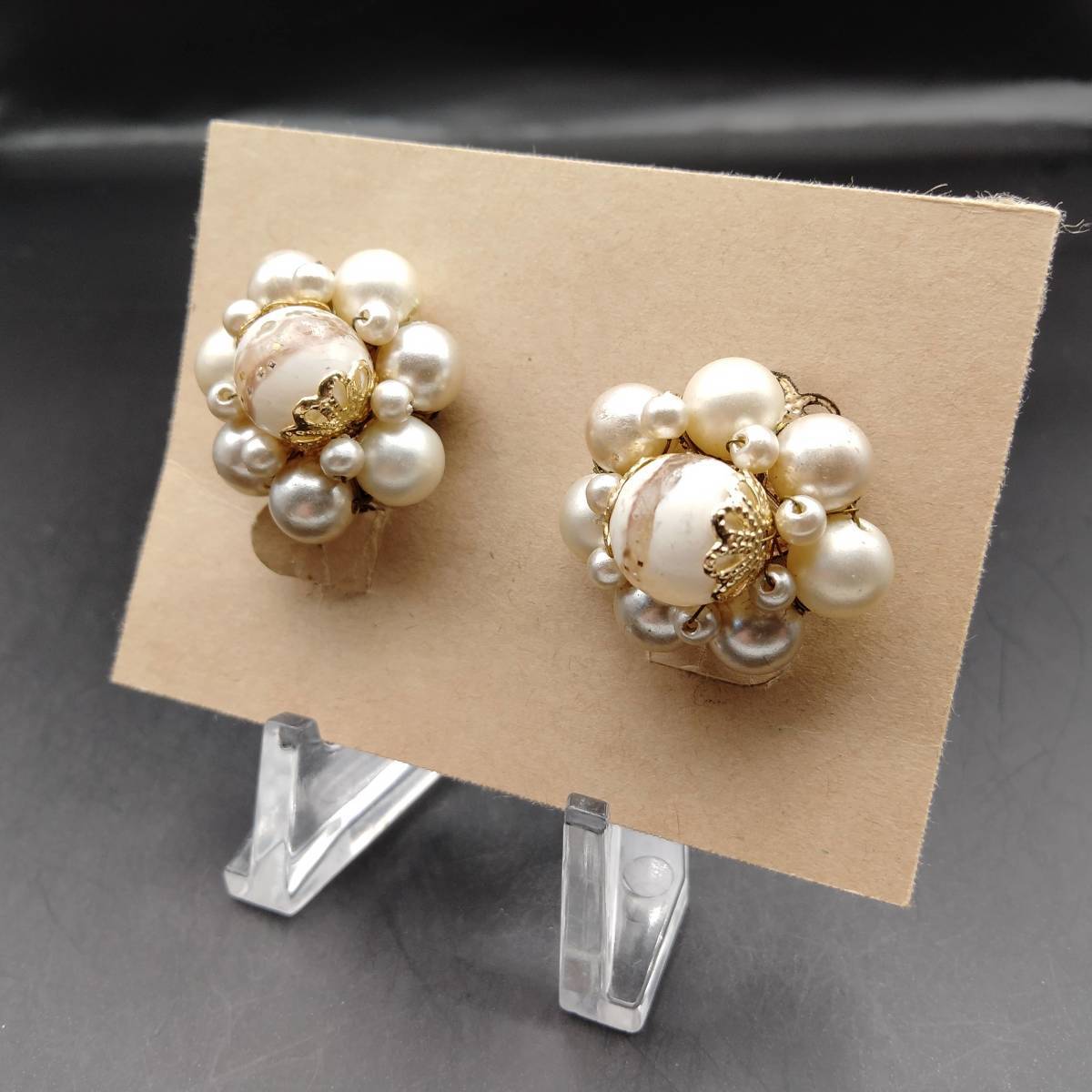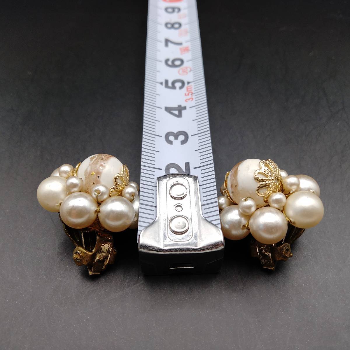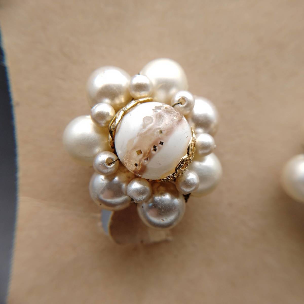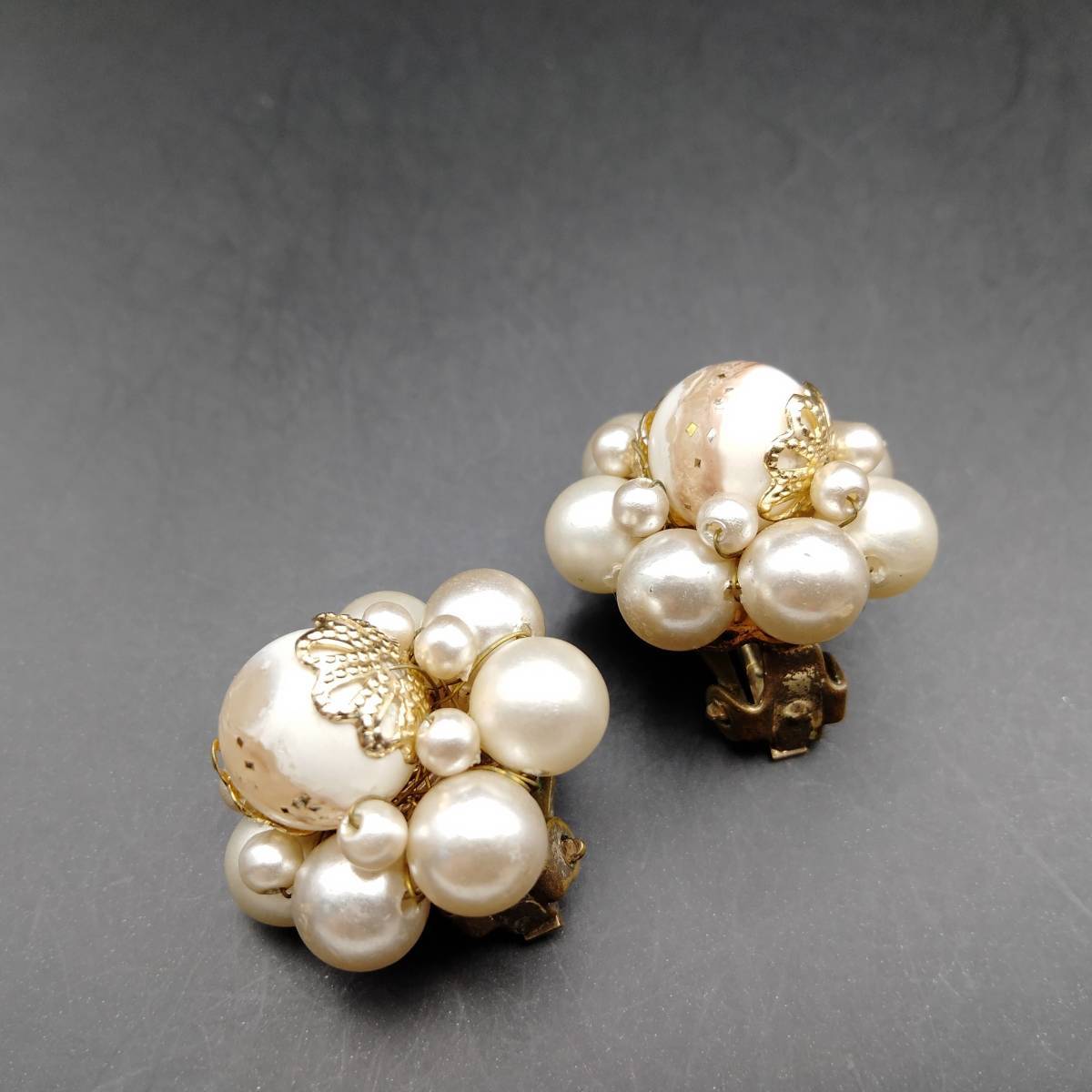 Japan ビンテージ ホワイト フェイク パール フラワー ピアス イヤリング アールデコ 昭和レトロ コスチューム ジュエリー 輸入 SAA①