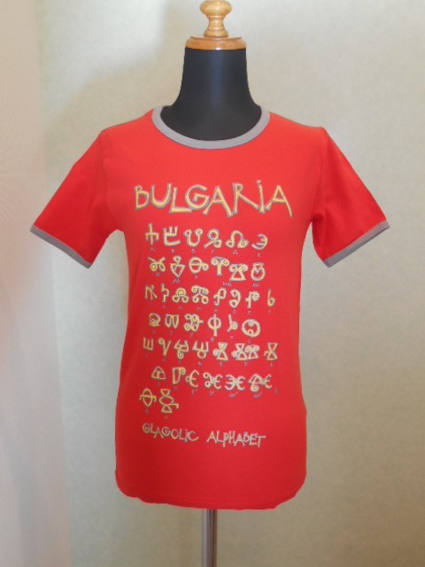 グラゴール文字のアルファベットがプリントされているTシャツです。