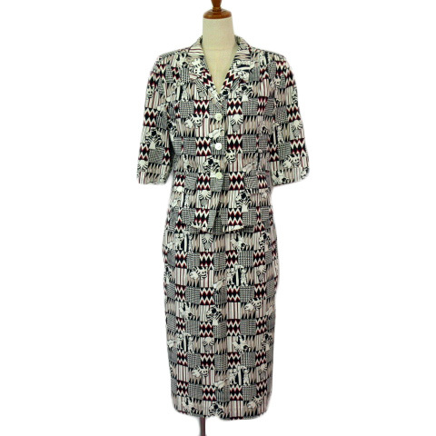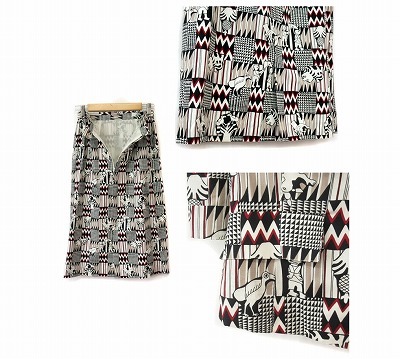 KENZO WATANABE ケンゾーワタナベ ヴィンテージ スーツ ジャケット スカート 総柄 黒 ブラック レディース