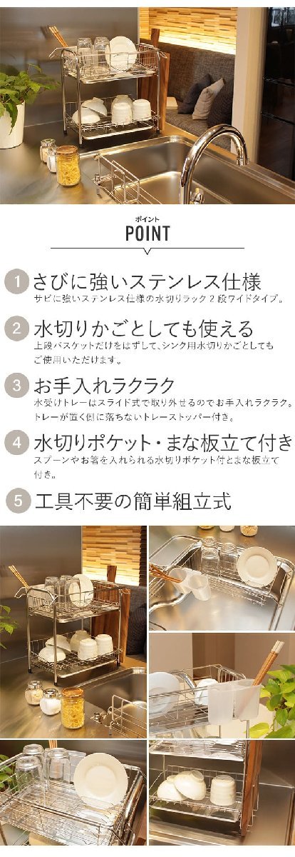 サビに強いステンレス仕様の水切りラック2段ワイドタイプ