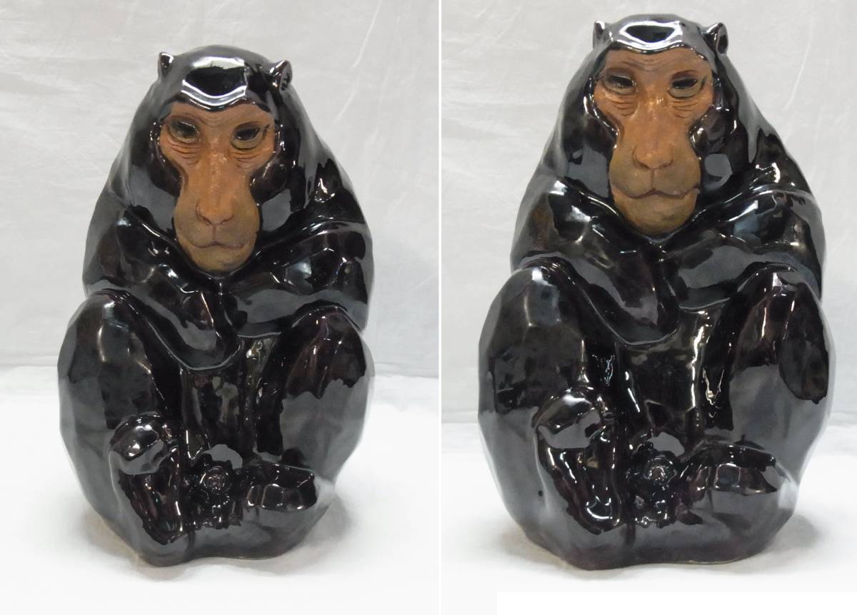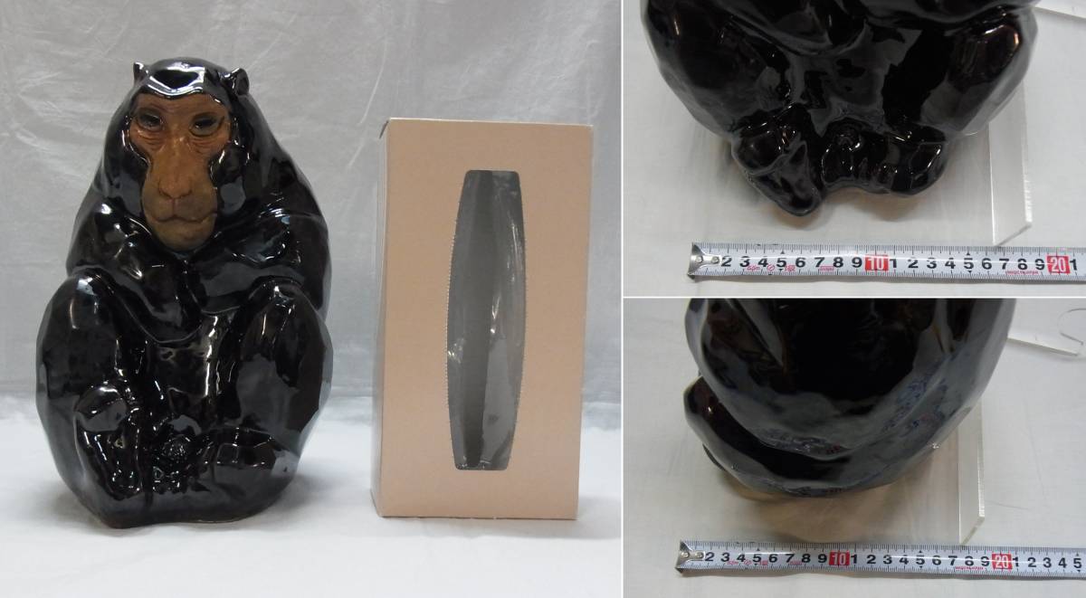 在銘☆九谷焼 猿 置物☆高さ約26cm 陶器 九谷 申 さる サル 干支 面取 銘 骨董 アンティーク ビンテージ 80 | |||