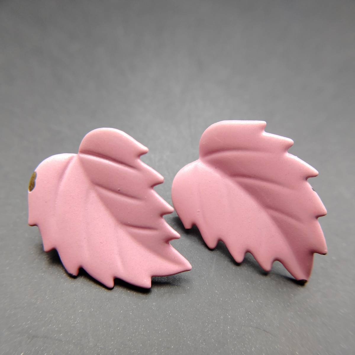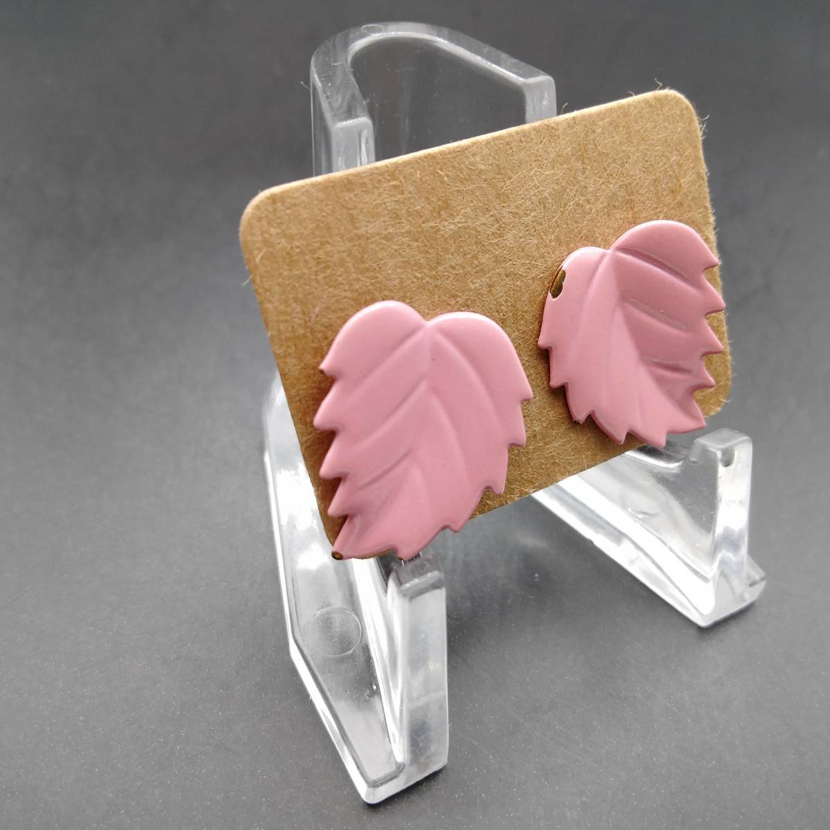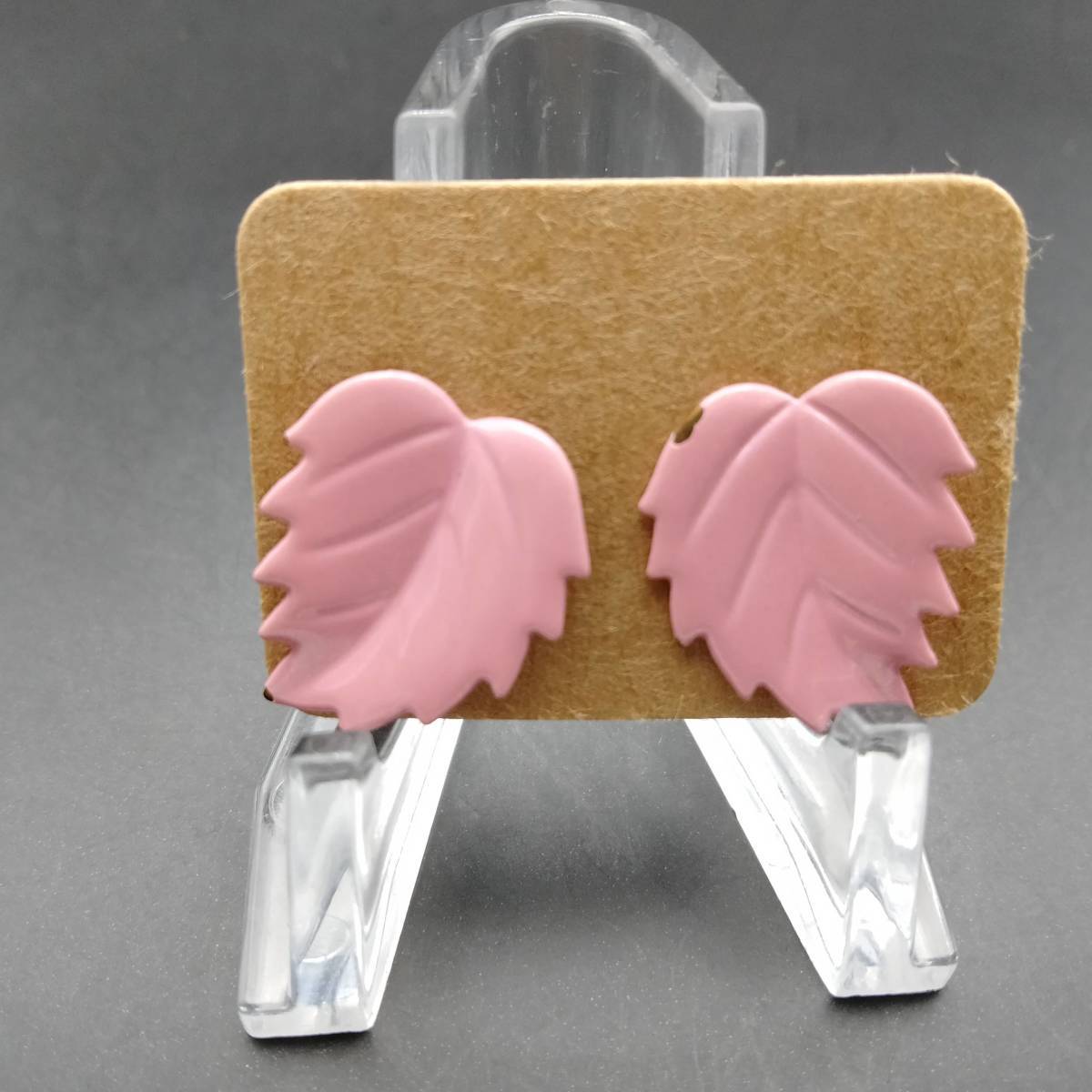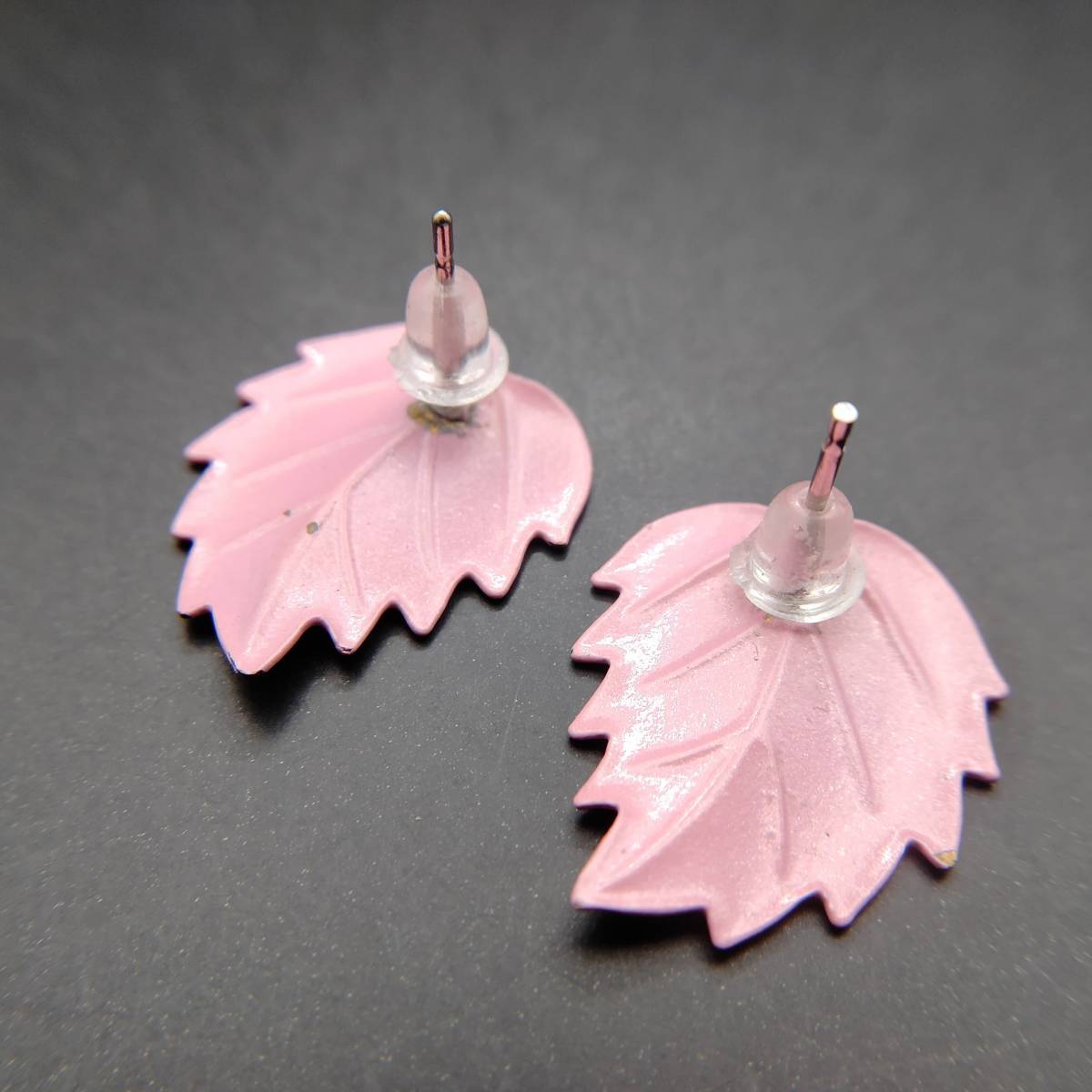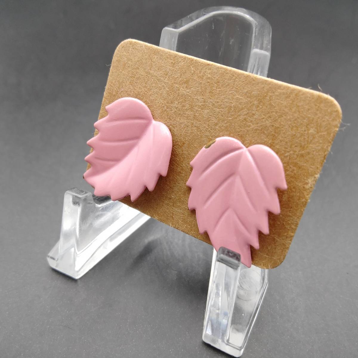 ピンク リーフ 葉 立体 ビンテージ ピアス イヤリング 昭和レトロ コスチューム ジュエリー 輸入 SAC