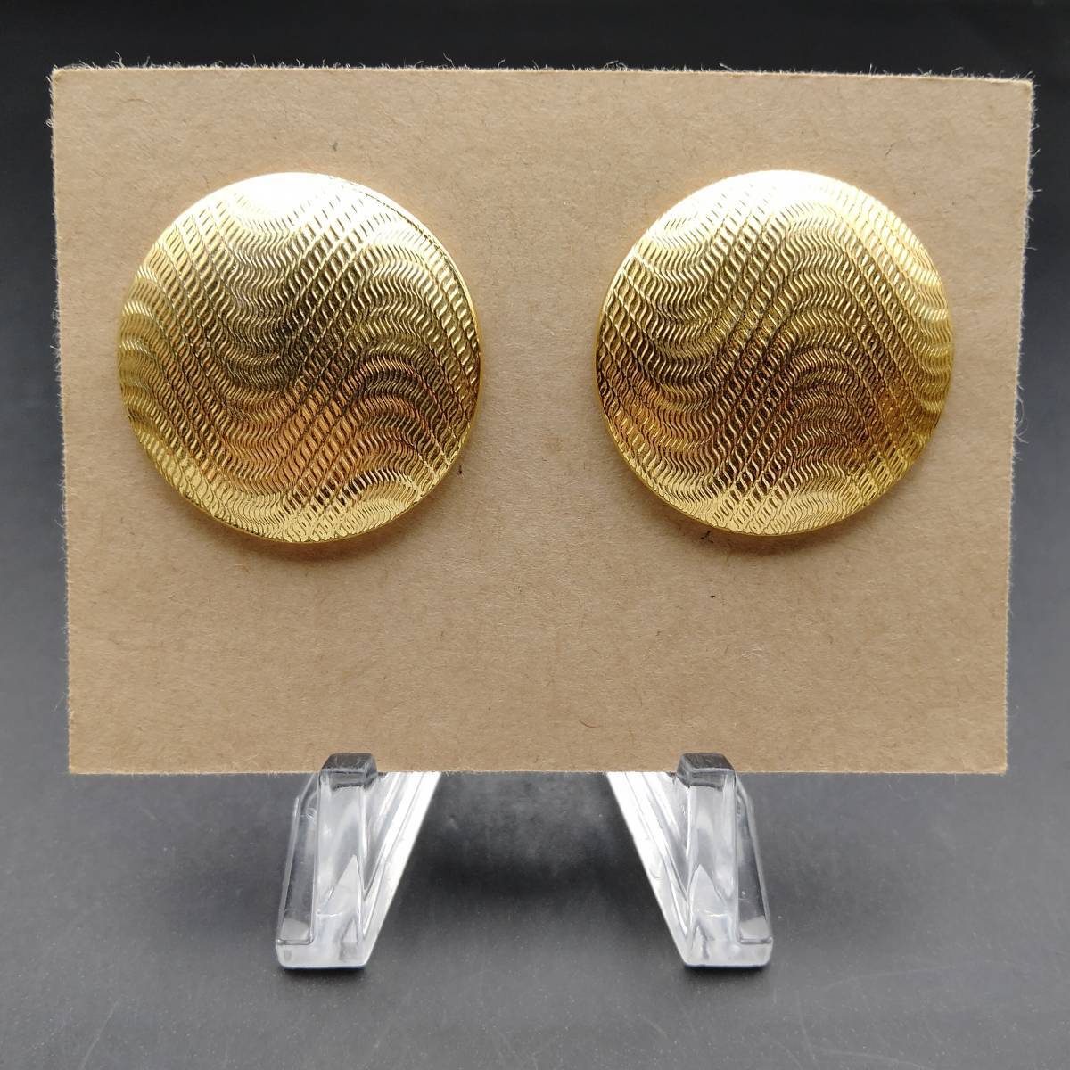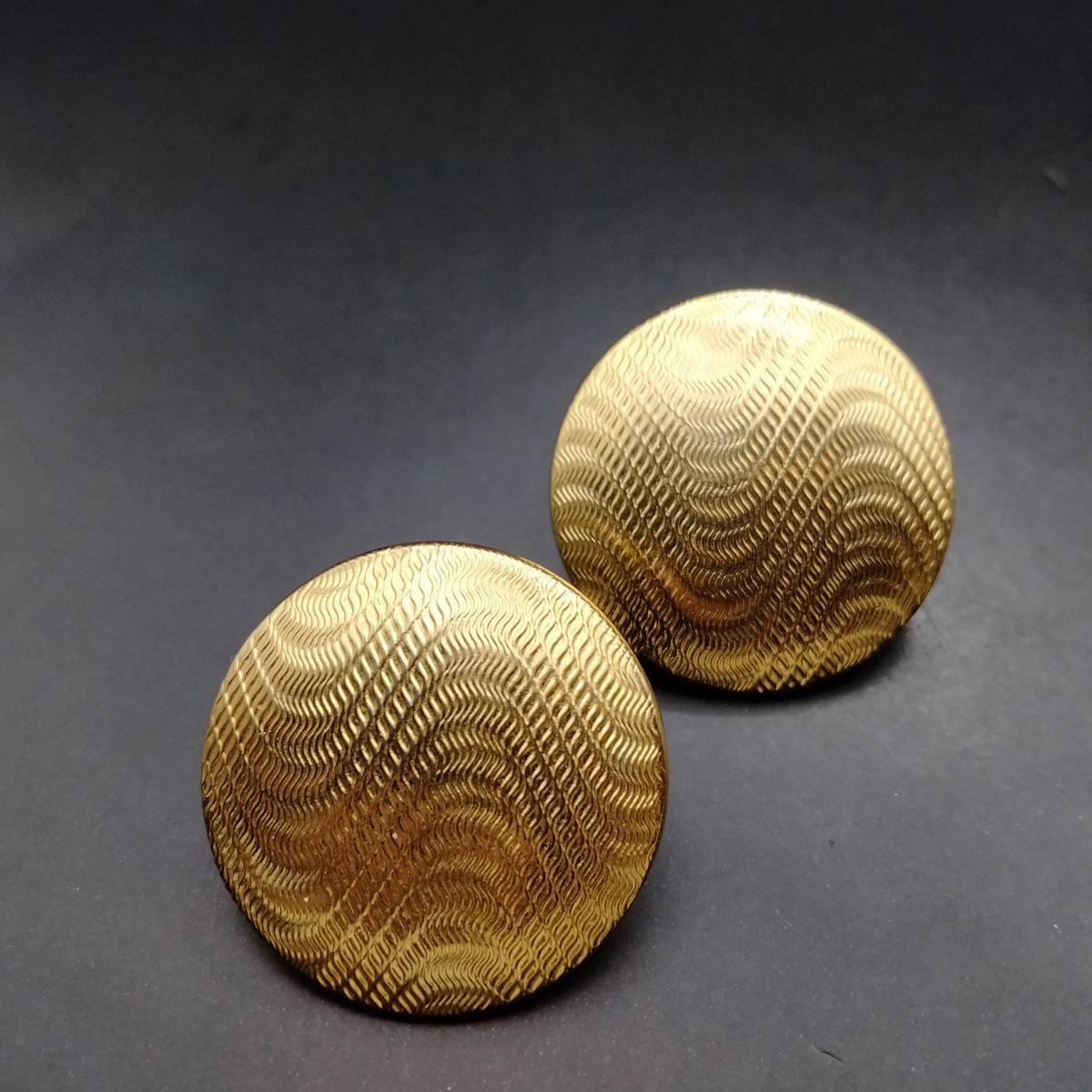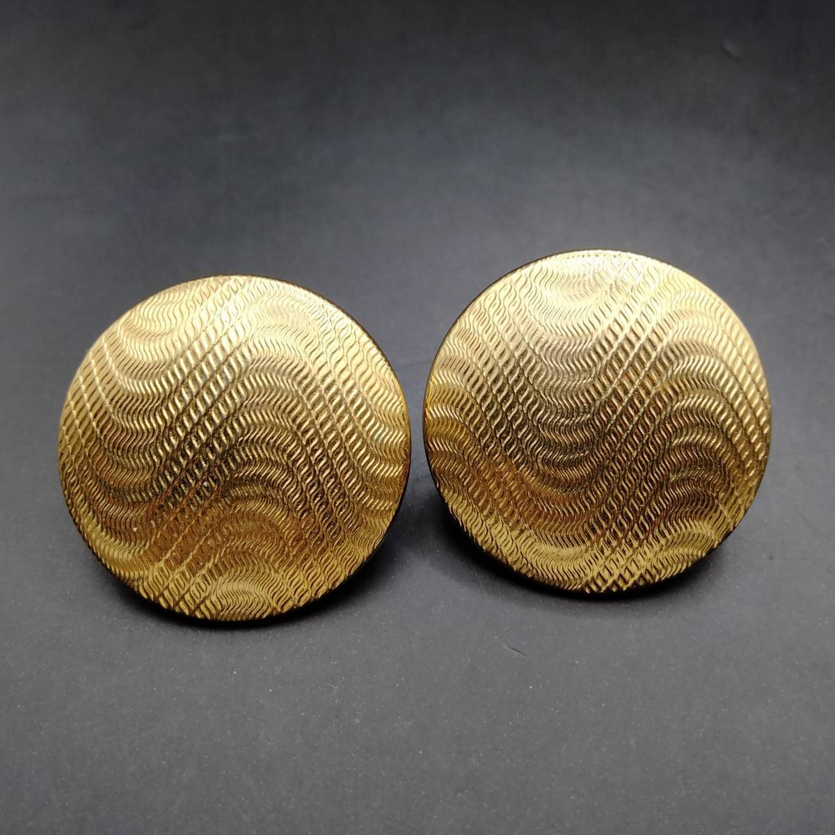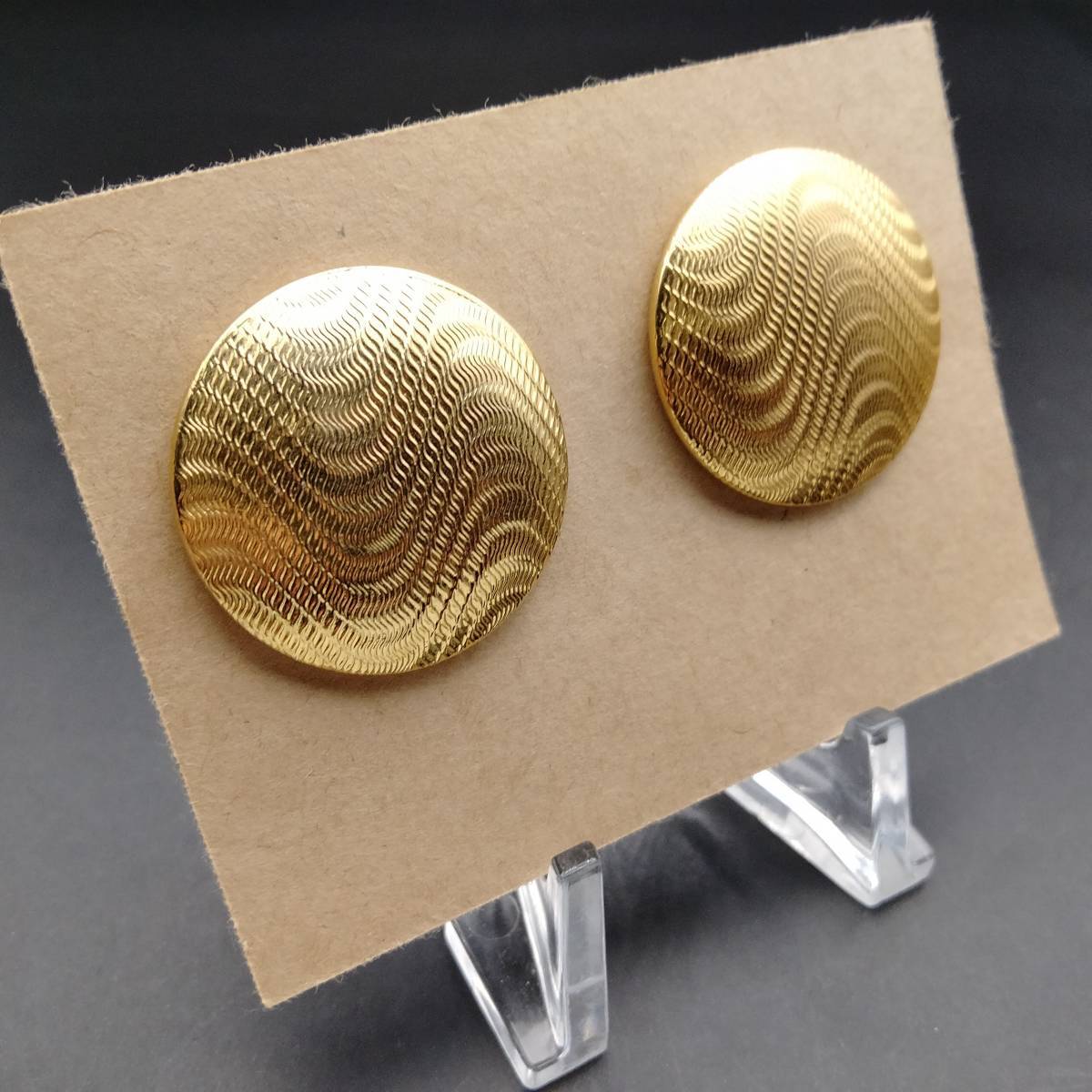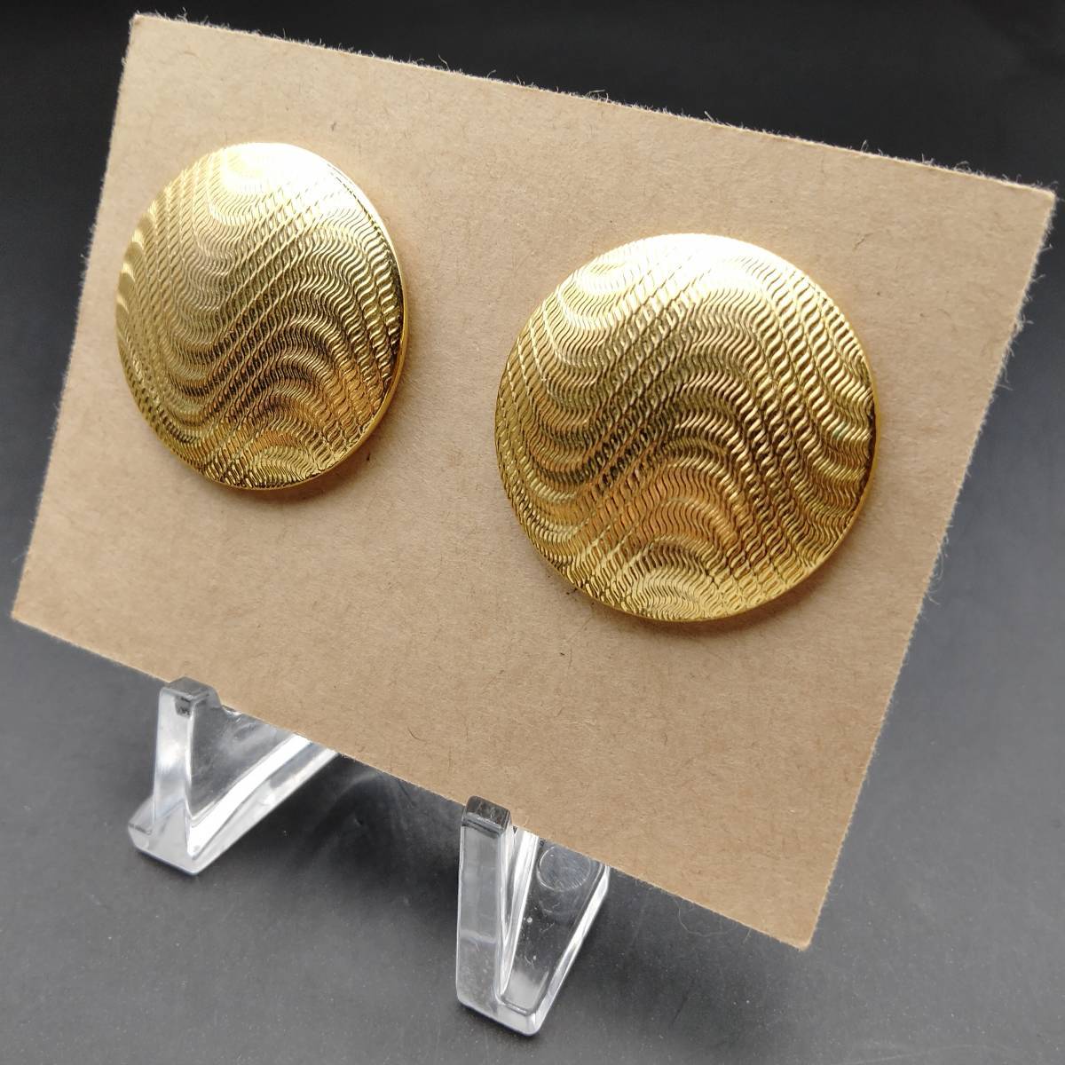 ラウンド ウェーブ ライン 模様 ゴールドトーン ビンテージ ピアス イヤリング 昭和レトロ コスチューム ジュエリー 輸入 6S-8