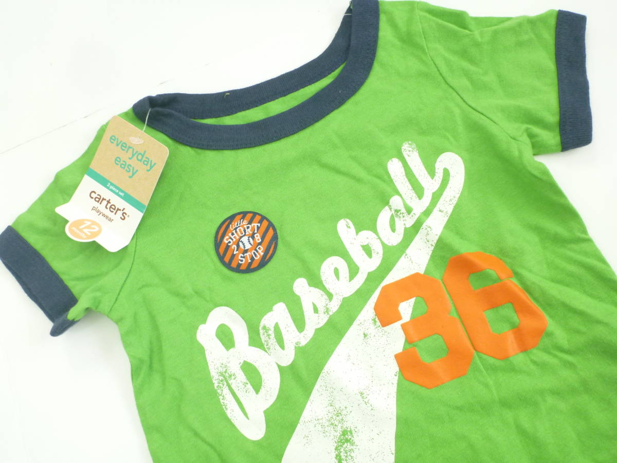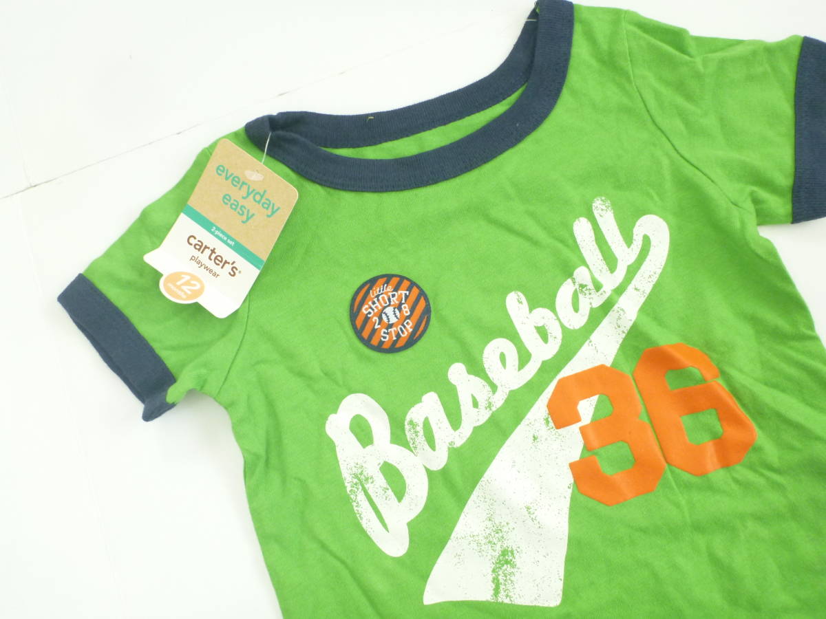 新品 carter's カーターズ ★黄緑 ベイスボール 野球 半袖Tシャツ 12m…身長70-80㎝ 体重9.2-11.1㎏