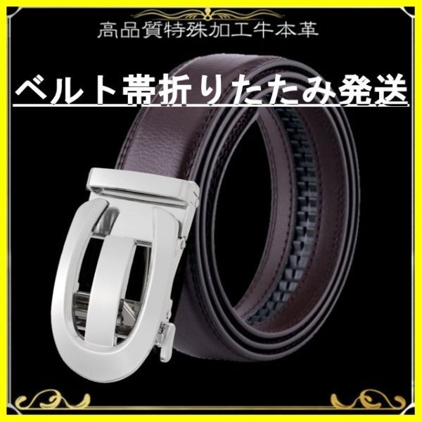 ベルト 【銀U】【茶】 折りたたみ発送 穴なし 無段階調整ベルト ゴルフベルト 人気 オートロック メンズ 革 ビジネス カジュアル