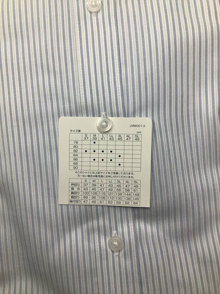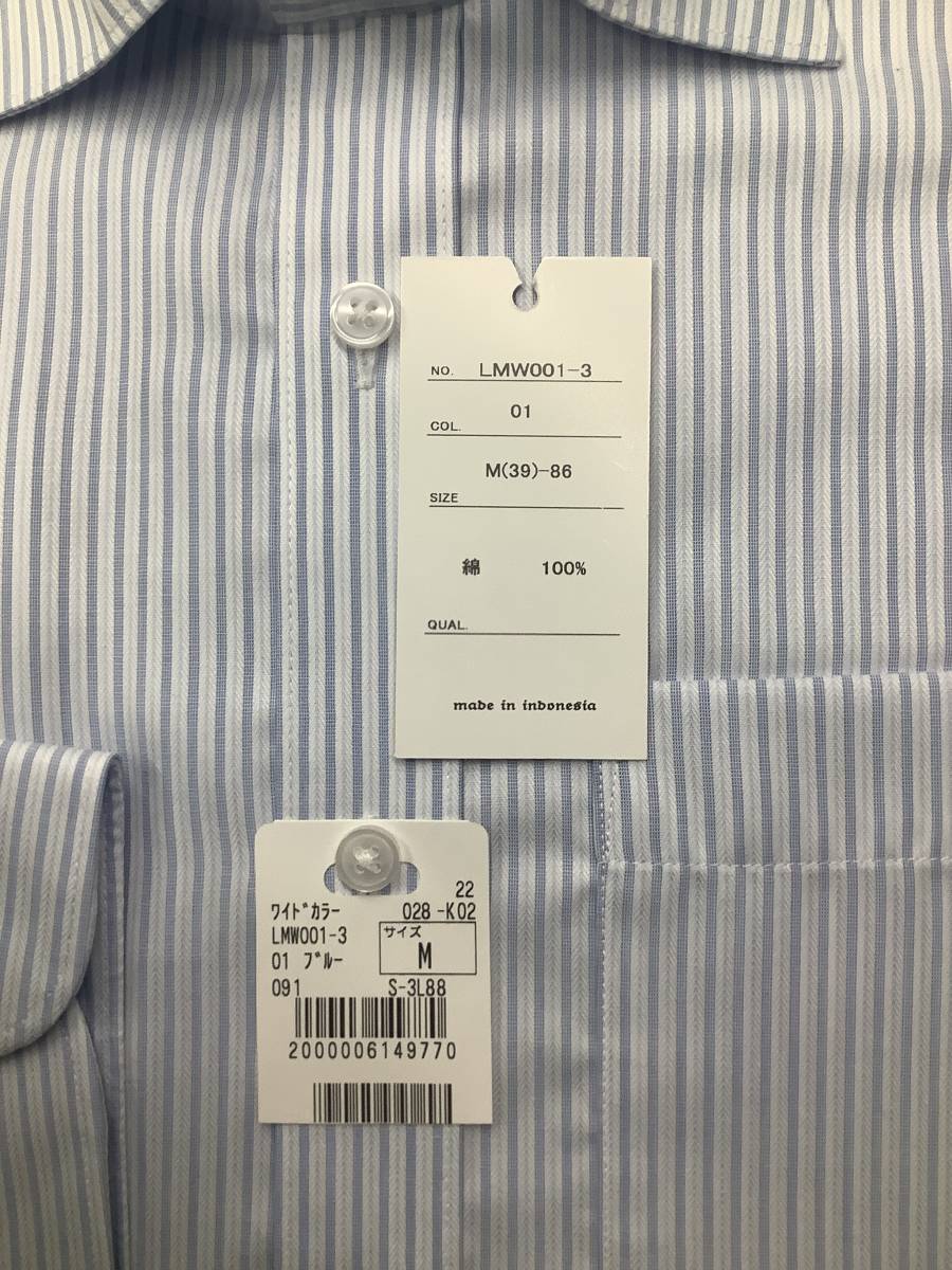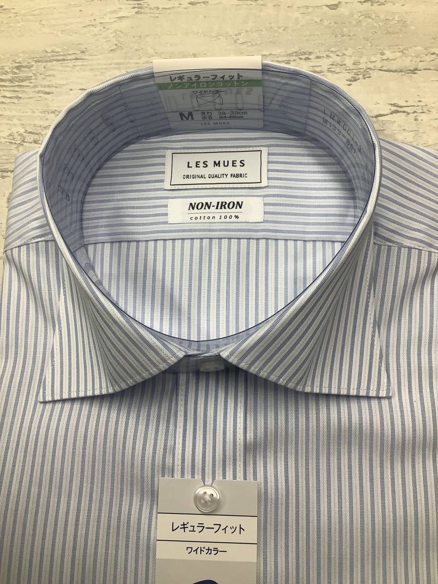 新品 39-86 長袖 Mサイズ ワイドカラーシャツ★ドレスシャツ ノンアイロン綿100%☆サックス系、柄ストライプ★