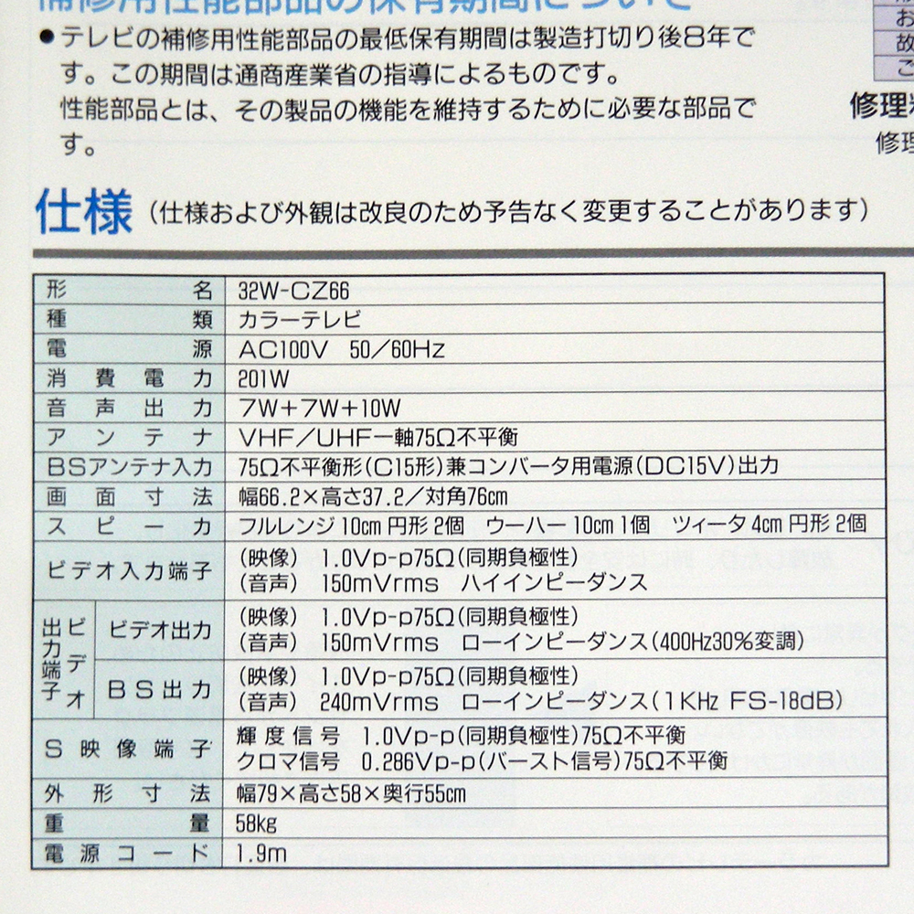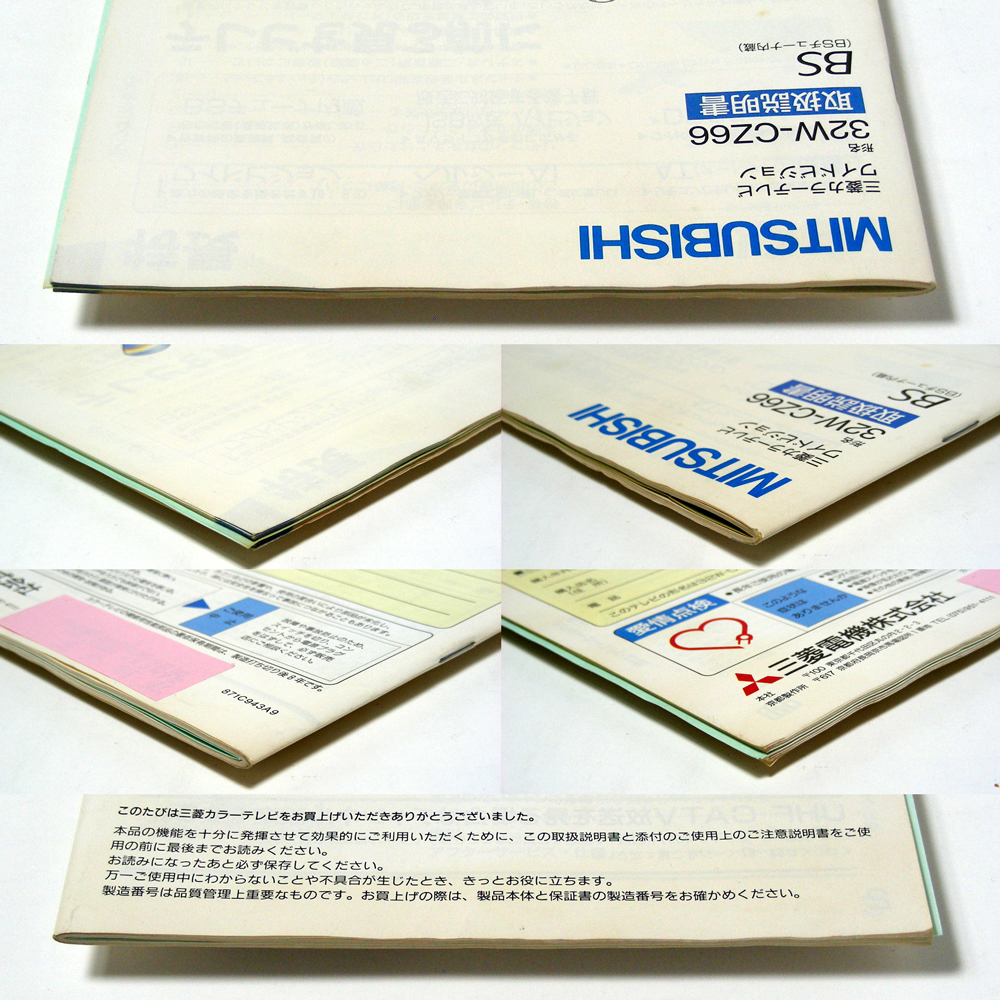 ◆取扱説明書のみ 珍品取説 マニア向き◆三菱カラーテレビ【32W-CZ66】 の取説 匿名配送/送料無料