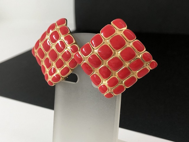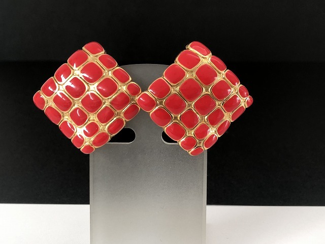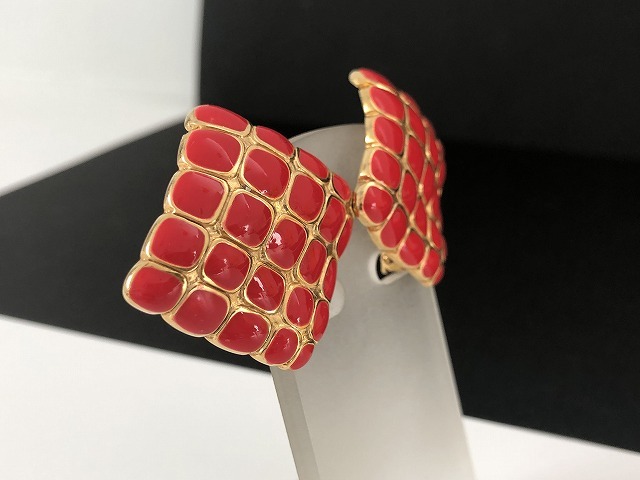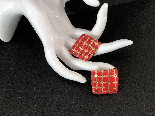 ゴールドトーン レッドエナメルカラー 大ぶりイヤリング USA [ae-772]ヴィンテージ オールド コスチュームジュエリー