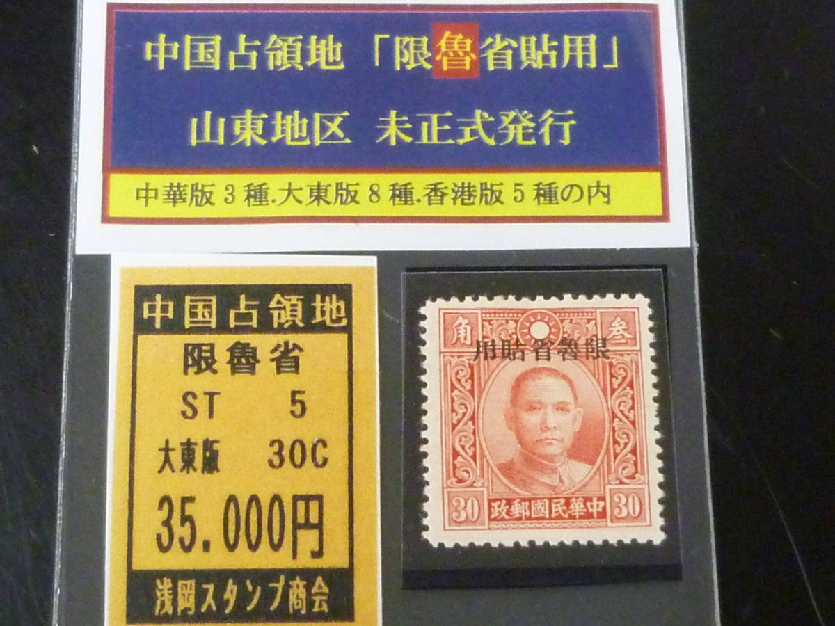 23L A №ST5 中国占領地切手 「限魯省貼用」 1941年 山東 未正式発行 国父像大東版 30c 未使用OH・VF