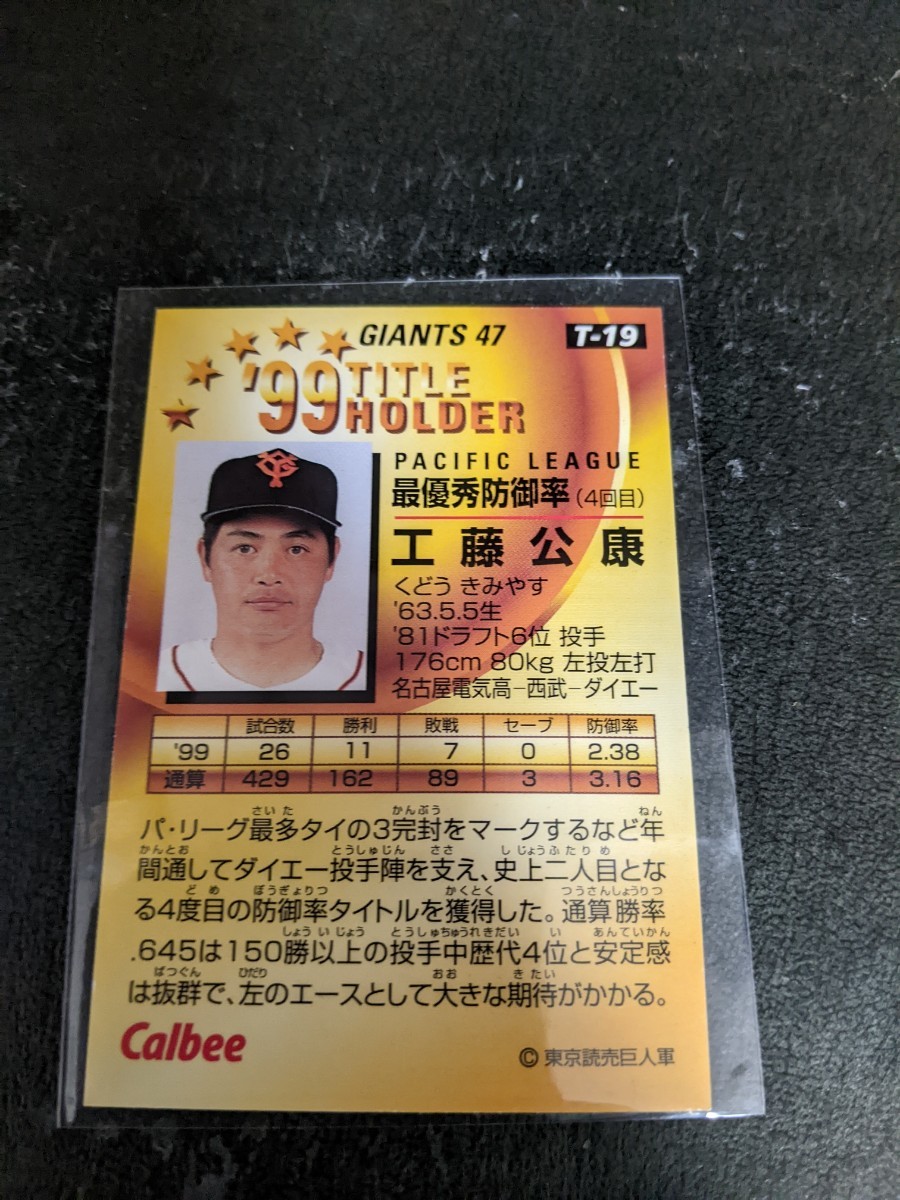 即決★カルビー2000 巨人 工藤公康 最優秀防御率 インサートカード