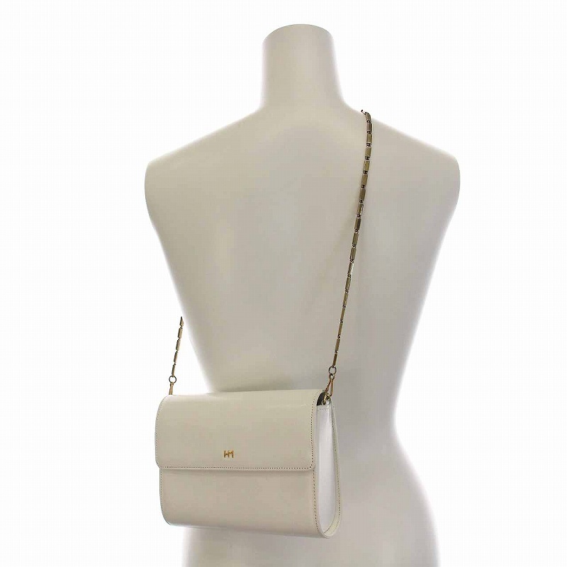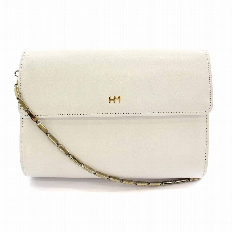 ハナエモリ HANAE MORI ショルダーバッグ ポシェット チェーン レザー 白 ホワイト /YM ■GY11 レディース