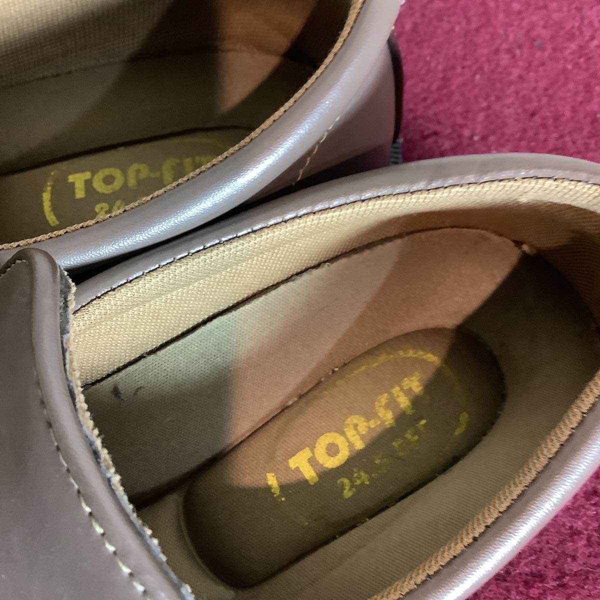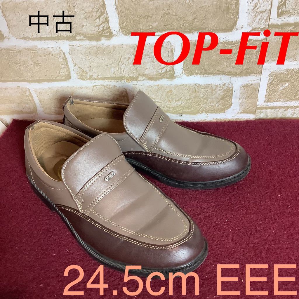 【売り切り!送料無料!】A-224 TOP-FIT!スリッポン!ブラウン!24.5cm EEE!バイカラー!おしゃれ!普段履き!中古!