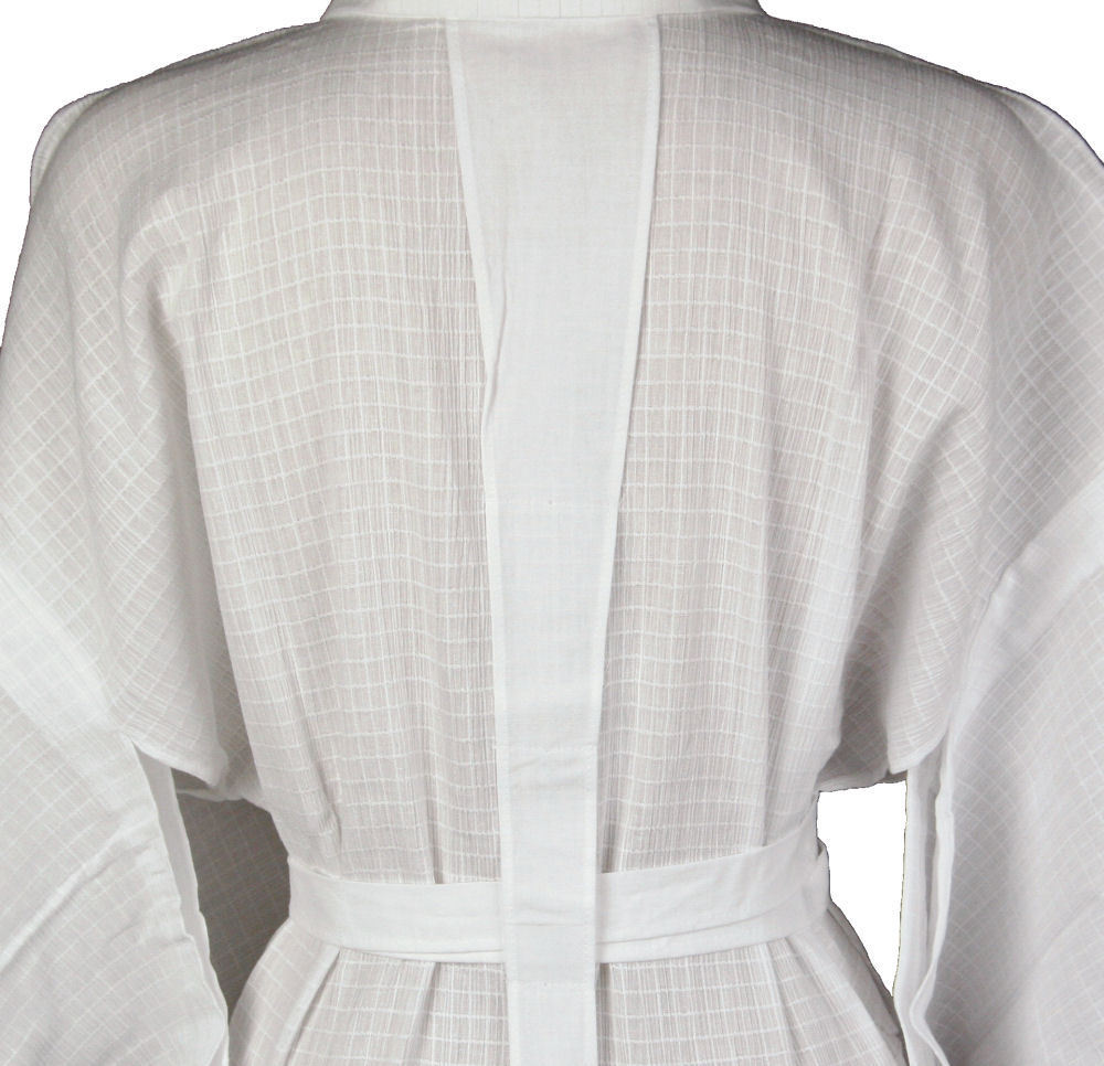 従来の胴抜き襦袢や長襦袢では身頃だけ綿で袖がポリエステルを使用している場合が多いのですが、こちらの商品は袖にも綿麻格子織クレープを使用。