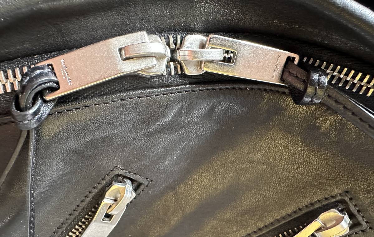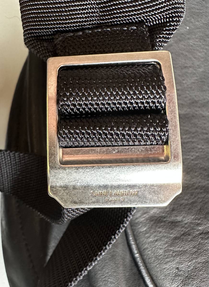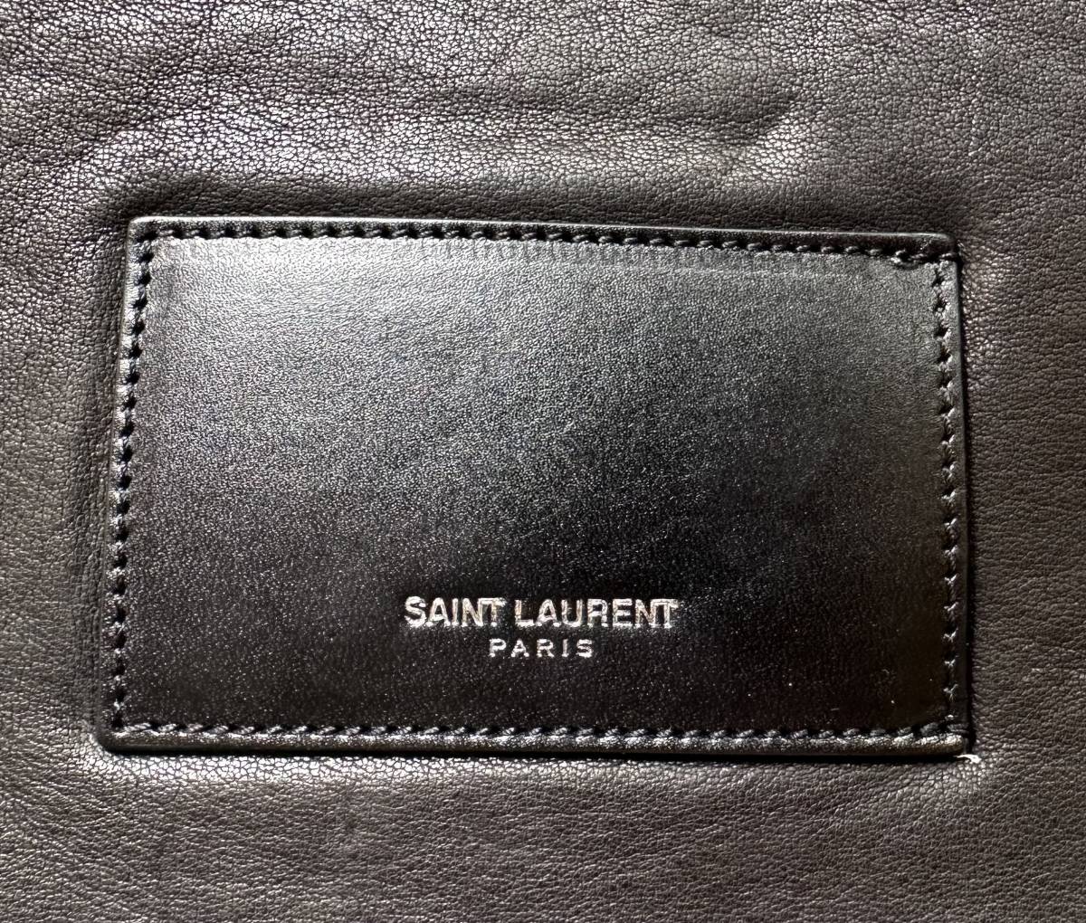 SAINT LAURENT PARIS サンローランパリ 15AW マルチジップデザインレザーリュック・ディパック美品です。サイズ:全高37cm。全幅31cm。マチ15cm。持ち手長さ6cm。持ち手幅2.5cm。ショルダーベルトの長さ41cm。ショルダーベルトの幅5cm。マテリアル:カーフレザー(牛革)。持ち手・ショルダーベルト部分はナイロン製。イタリア製。収納は内側にジップポケットが1箇所あります。外側には立体的なジップポケットがあり、全高12cm。全幅21cm。マチ5cmのサイジングです。その他のマルチジップは開閉しますが装飾なのでポケットとしての機能は果たしていません。持ち手の部分に若干のほつれが見受けられます。状態は10段階で8位です。エディ・スリマンファンやコレクターの方でご理解頂ける方のみノークレーム・ノーリターンでお願いします。