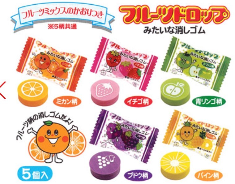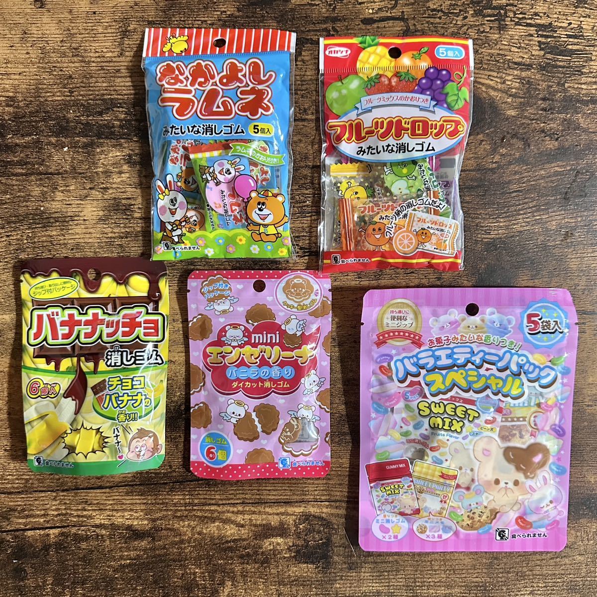 バラエティーパック消しゴム キャンディ ドロップ ラムネ バナナチョコ 消しゴム 新品未使用品 5点セット B2
