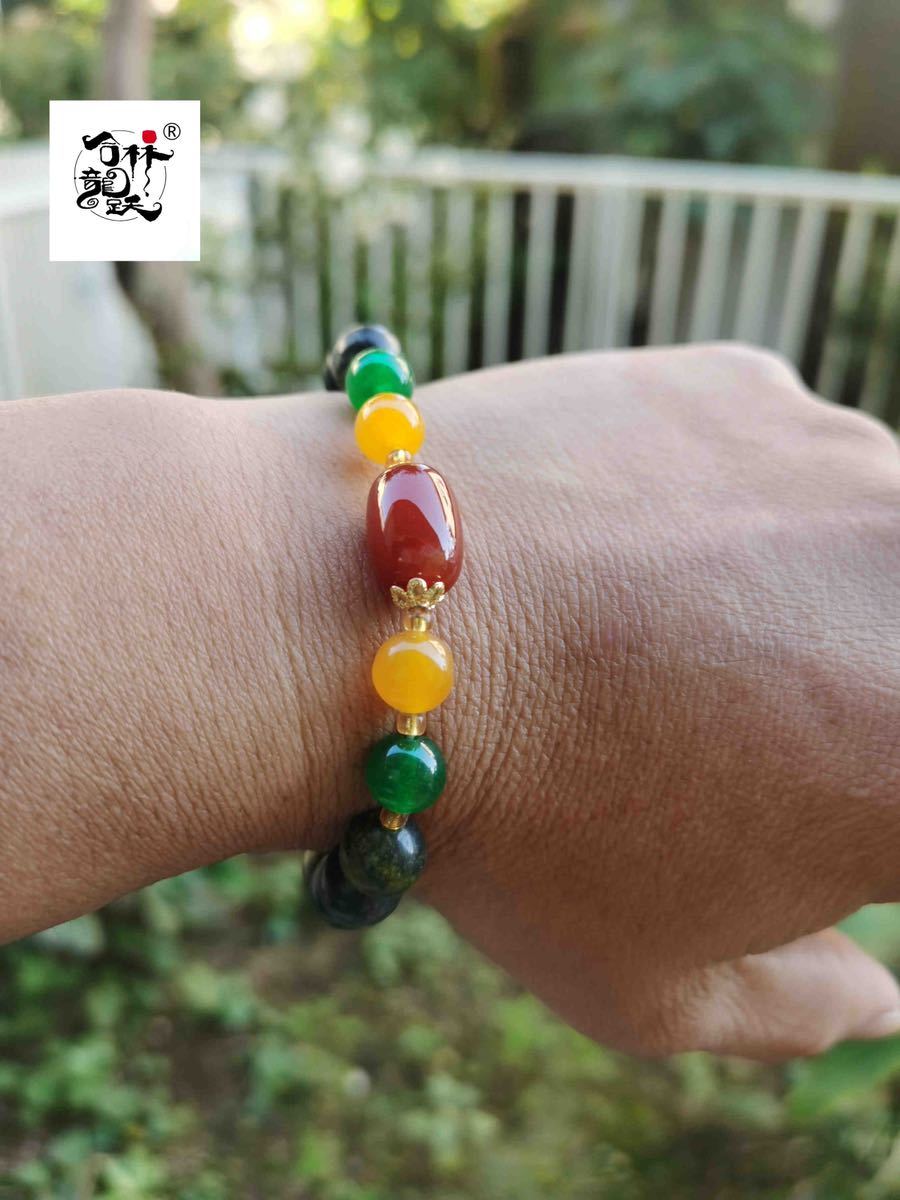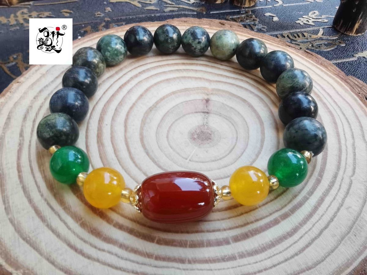 商品名:天然岫玉 南紅 玉髄 個性的 ブレスレット