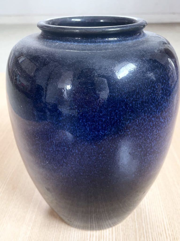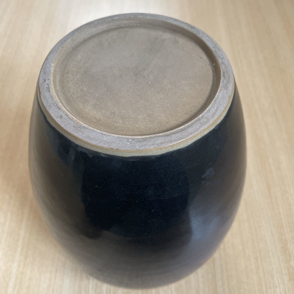 重厚なデザイン 和風 花瓶 壺 睡蓮鉢 昭和レトロ 紺色 藍色 ヴィンテージ 和物 インテリア雑貨 工芸品 伝統工芸 和室