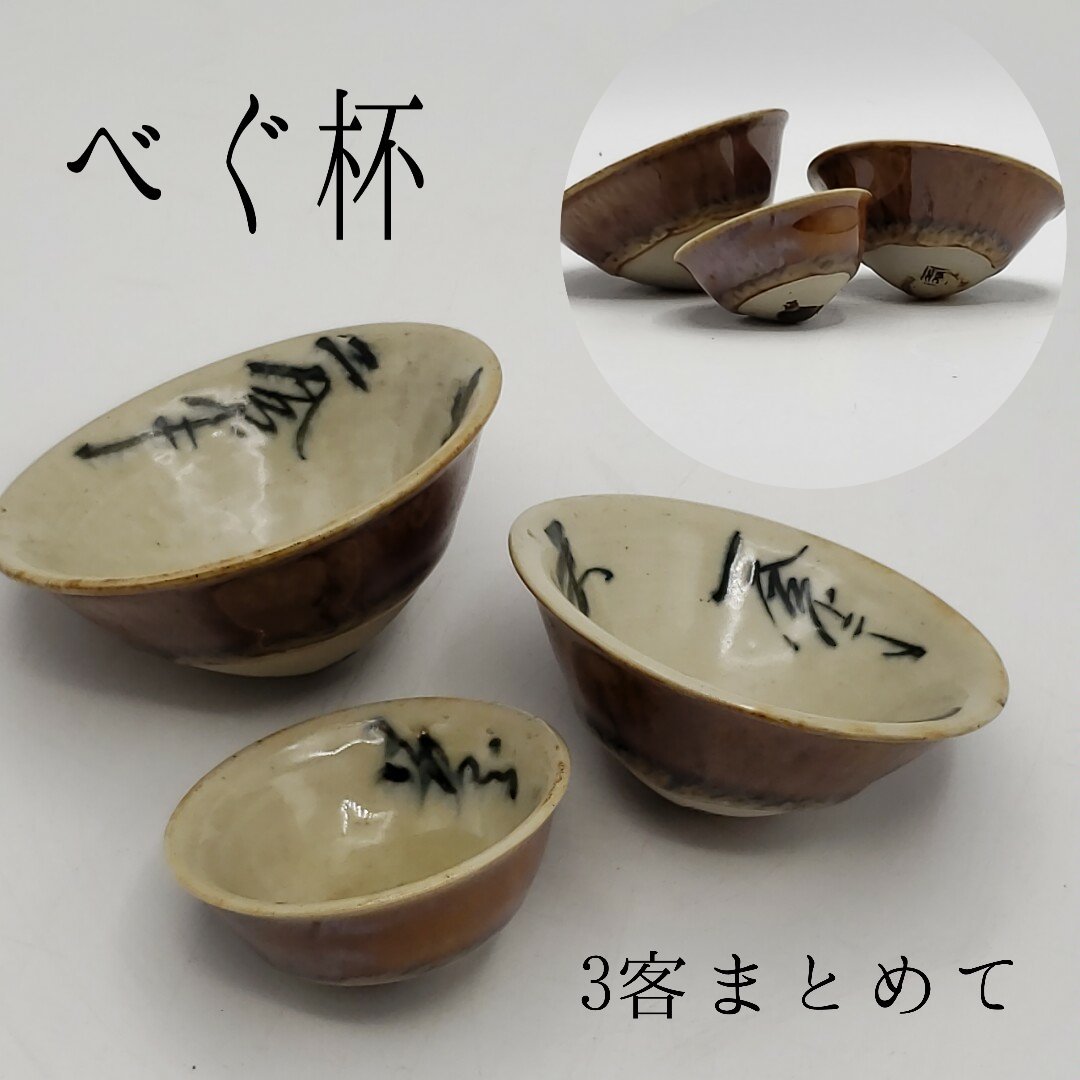| べく杯 お猪口 ぐいみ 酒器 下に置けない杯 お座敷遊び 可杯 3客まとめて 大中小 陶器製 和食器 高知 | |