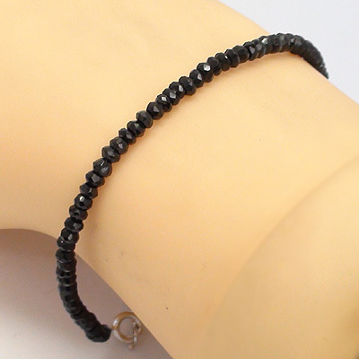 ブラックスピネル ブレスレットブラックダイヤモンドに匹敵する輝きを持つブラックスピネルを連ねたブレスレットです。芸能人も多数愛用しています。材質 シルバー925(品質を保証するシルバー925の刻印があります)宝石名 ブラックスピネル 2.5mm全長 約18cm商品コード 2009032401ギフト対応 早割 ポイント消化 安い