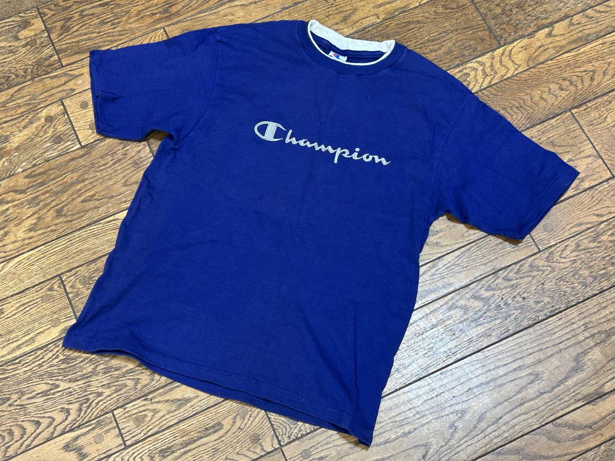A2421 チャンピオン Champion◆半袖 Tシャツ メンズM ネイビー 90年代ビンテージ USA製