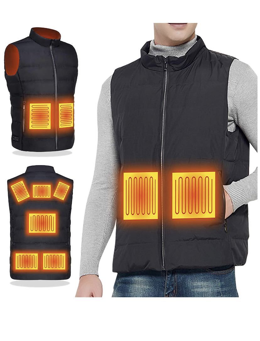 【3段温度制御+3つ区域別々調温+8つの加熱シート】この防寒ベストは超ソフトダウン製で、わずか3秒で加熱でき、保温しながら通気性と無制限の動きを最大化します。8つの加熱シートは肩(3つ)、腰(3つ)、腹部(2つ)に配置されています。三つのボタンが8つの加熱シートをコントロールして、お腹、肩とウエストを加熱します。色により温度段階も一目で分かりやすくて、ボタンを押すと簡単に温度を調整できます。