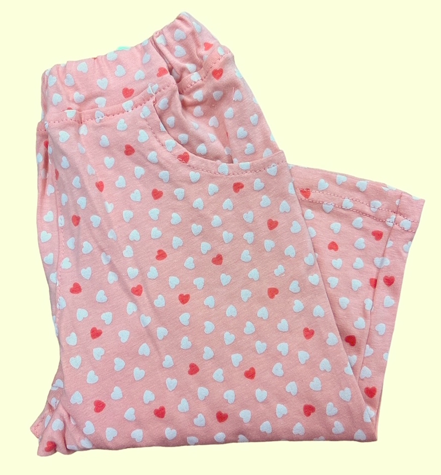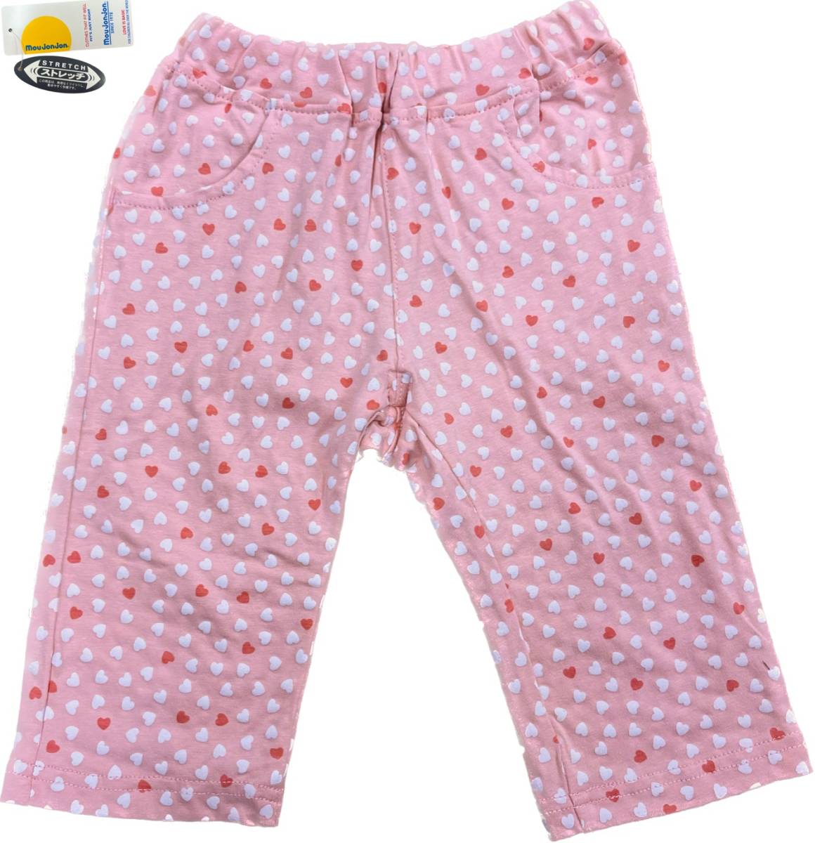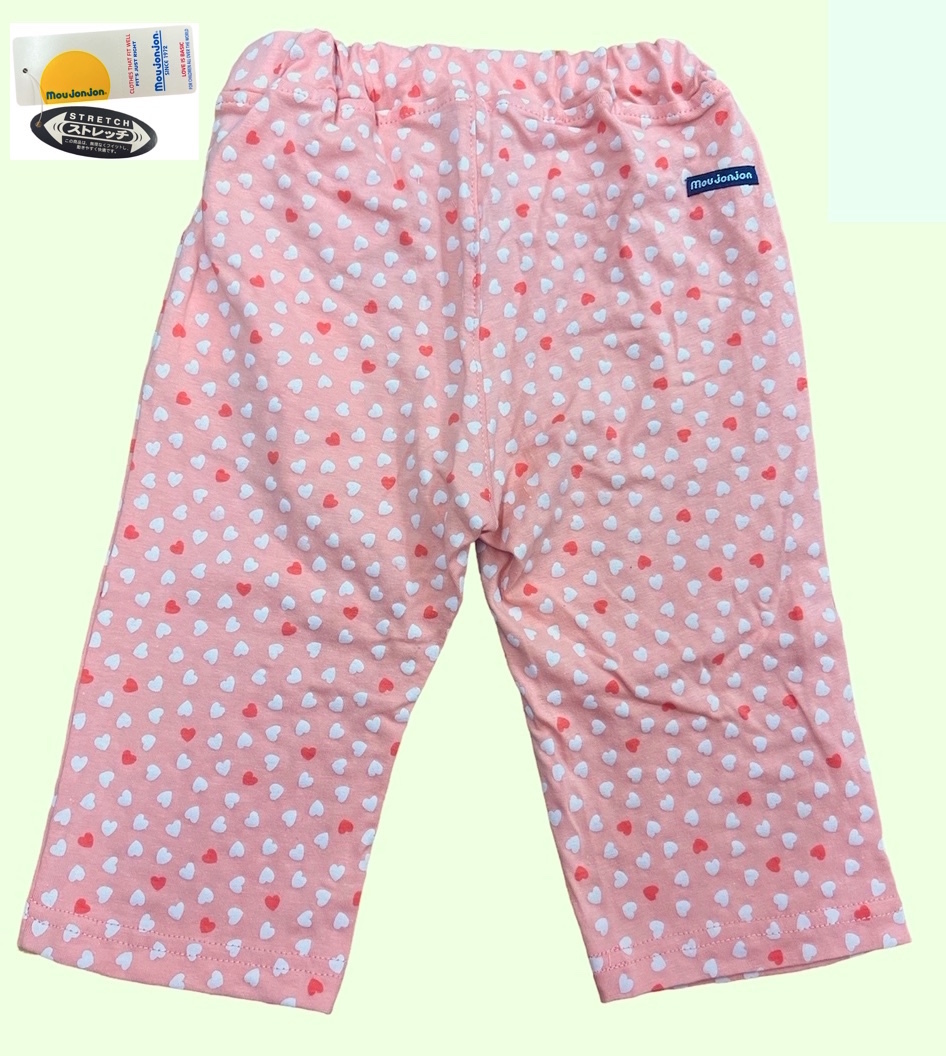 即決 新品タグ付 Moujonjon ムージョンジョン★小さなハート柄 天竺 六分丈 ハーフパンツ★お出かけに 遊び着に★90cm 1-2才 ¥2200