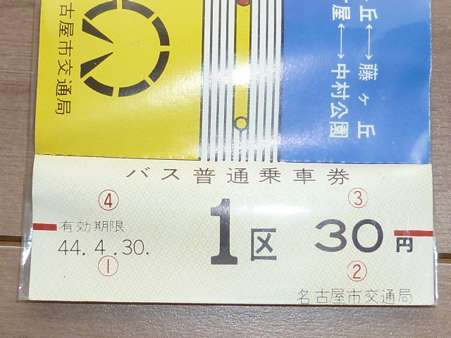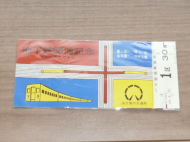 記念切符★地下鉄開通記念 バス普通乗車券★名古屋市交通局★昭和44年4月1日★1枚★星ヶ丘藤が丘、名古屋中村公園★