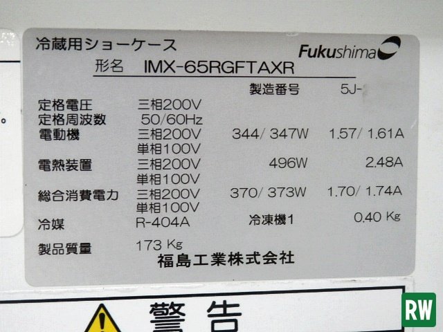 | 冷蔵ショーケース フクシマ IMX-65RGFTAXR 三相200V 50/60Hz 1800×1100×850mm アイランド型 |
