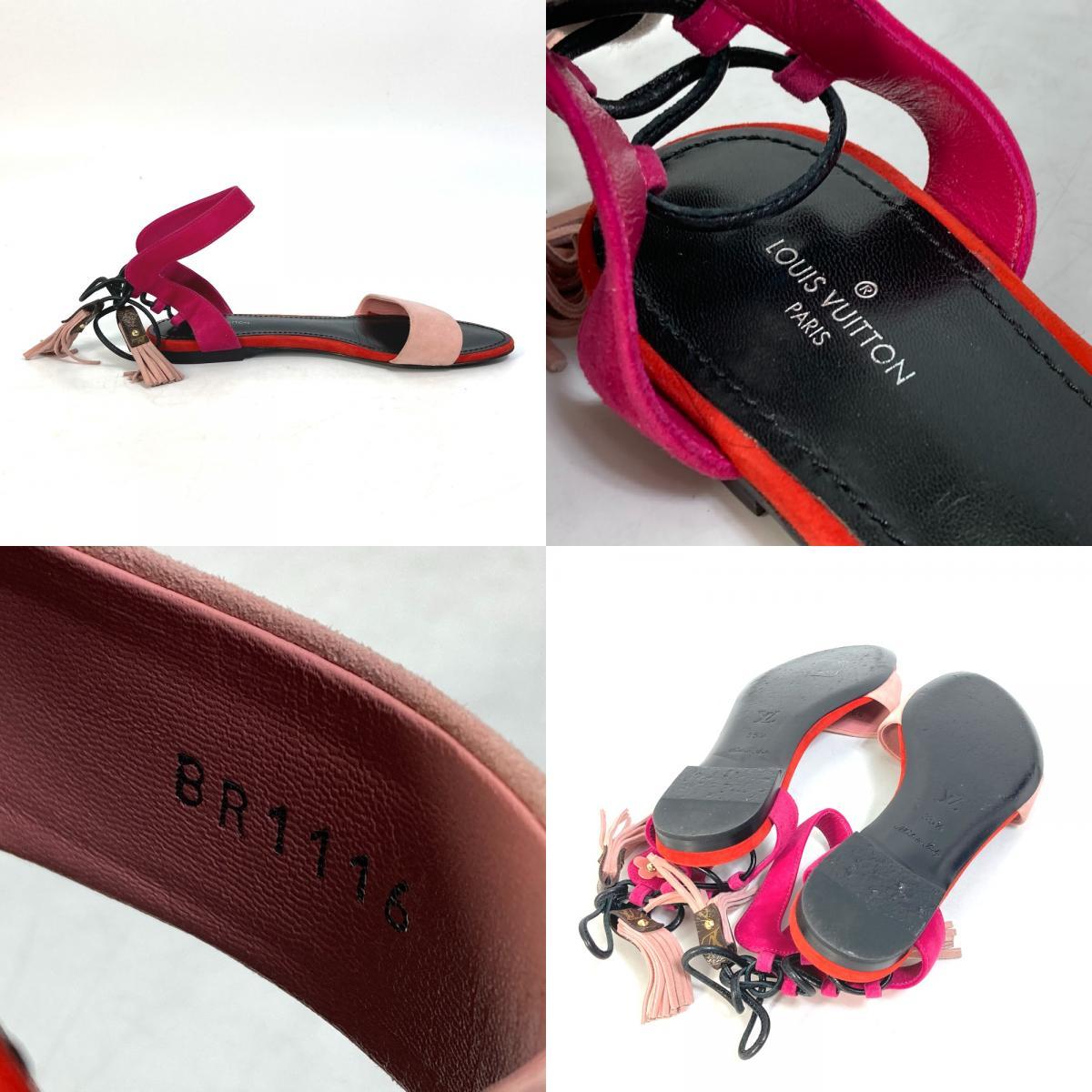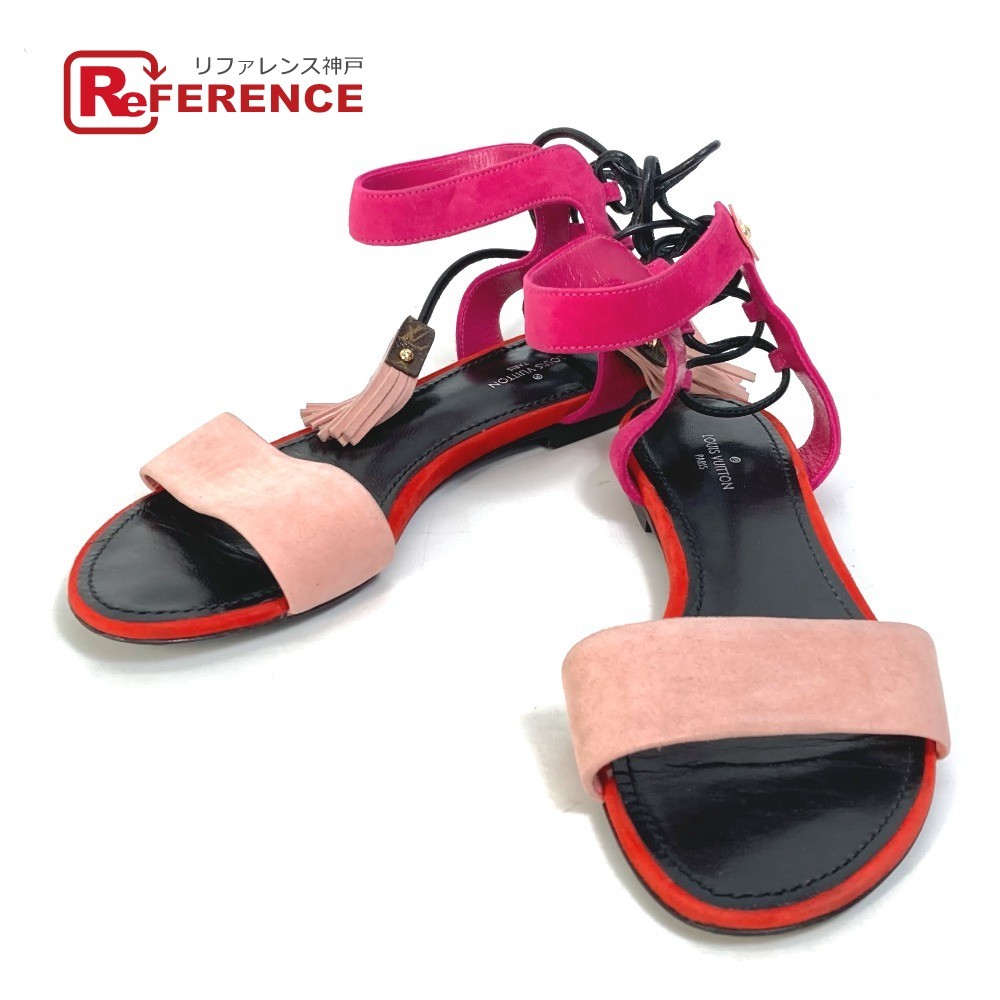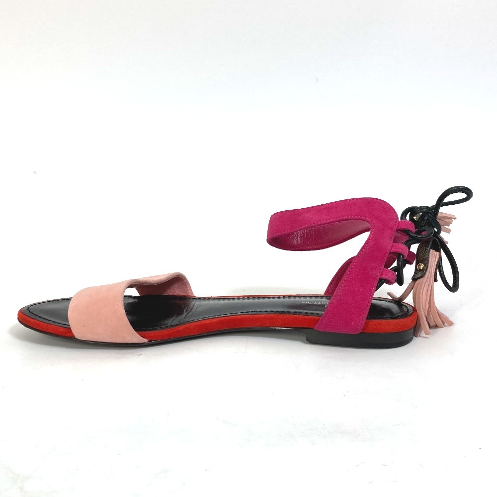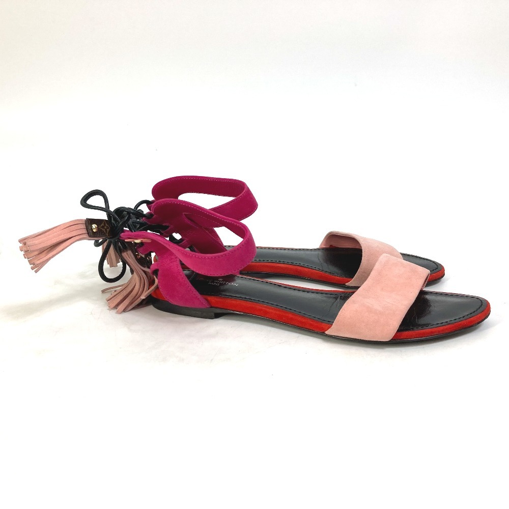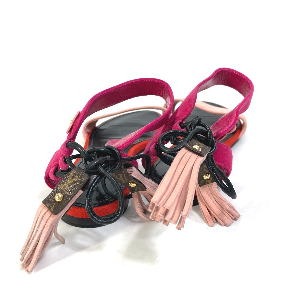 LOUIS VUITTON ルイヴィトン モノグラム フラワー タッセル フリンジ 靴 ペタンコ フラット サンダル レザー/スエード ピンク 【中古】