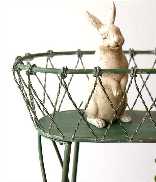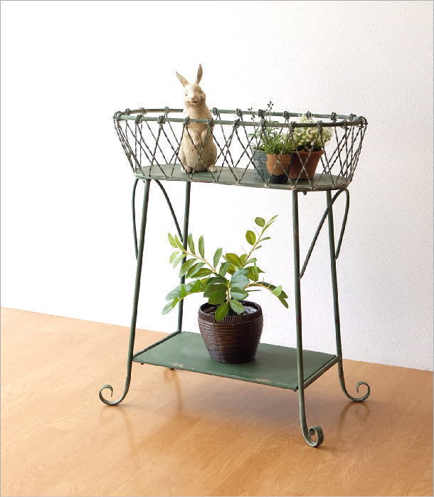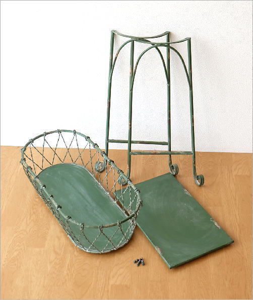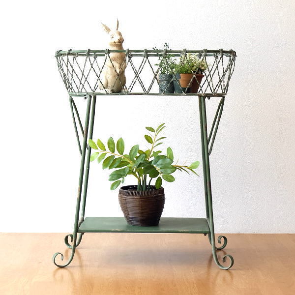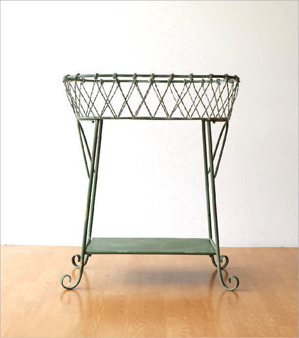 | 大きなメッシュのバスケットが付いた 棚付きのアイアンのフラワースタンドは くすみグリーンにエイジング加工を施した シャビー感たっぷりのオシャレなデザイン 商品名 : レトロアイアンのスタンドバスケット 商品番号 : cov7242 全体サイズ(cm) : 幅66×奥行33×高さ7 バスケットサイズ : 幅66(底56)×奥行33(底22.5)×深さ15 棚のサイズ : 幅46×奥行27 バスケットと棚の空間高さ : 47 材質 : スチール 重量 : 3kg 生産国 : 中国 ※商品の特性上、塗装の色ムラ・剥げ・小キズ・小さな欠け・隙・凹み等ございます。また手作り品のため、全体的に作りがアバウトでございます。シャビー風な雰囲気を楽しむ商品としてご理解のうえご検討下さい。 ※お客様による簡単な組み立て品です ※手作り品の為、アイアンのゆがみや傾き、凹みやがたつき等はご容赦ください ※直射日光や風雨によるダメージは避けられません。より長く楽しむために定期的なメンテナンスをお勧めします ※わざと色ムラや塗装剥げ、錆ペイントを付け、よりシャビーな風合いを表現した商品です(摩擦などによりペイントが手や衣類に移る場合があります) ※ディスプレイによる色の違いはご了承下さい |