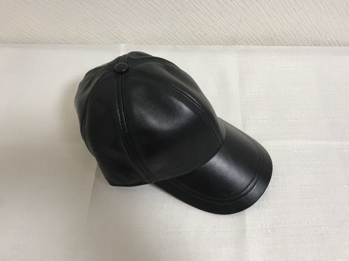 新品未使用本物リアル本革ラムレザー羊皮キャップ帽子黒ブラック旅行トラベルメンズレディースセレブレザー