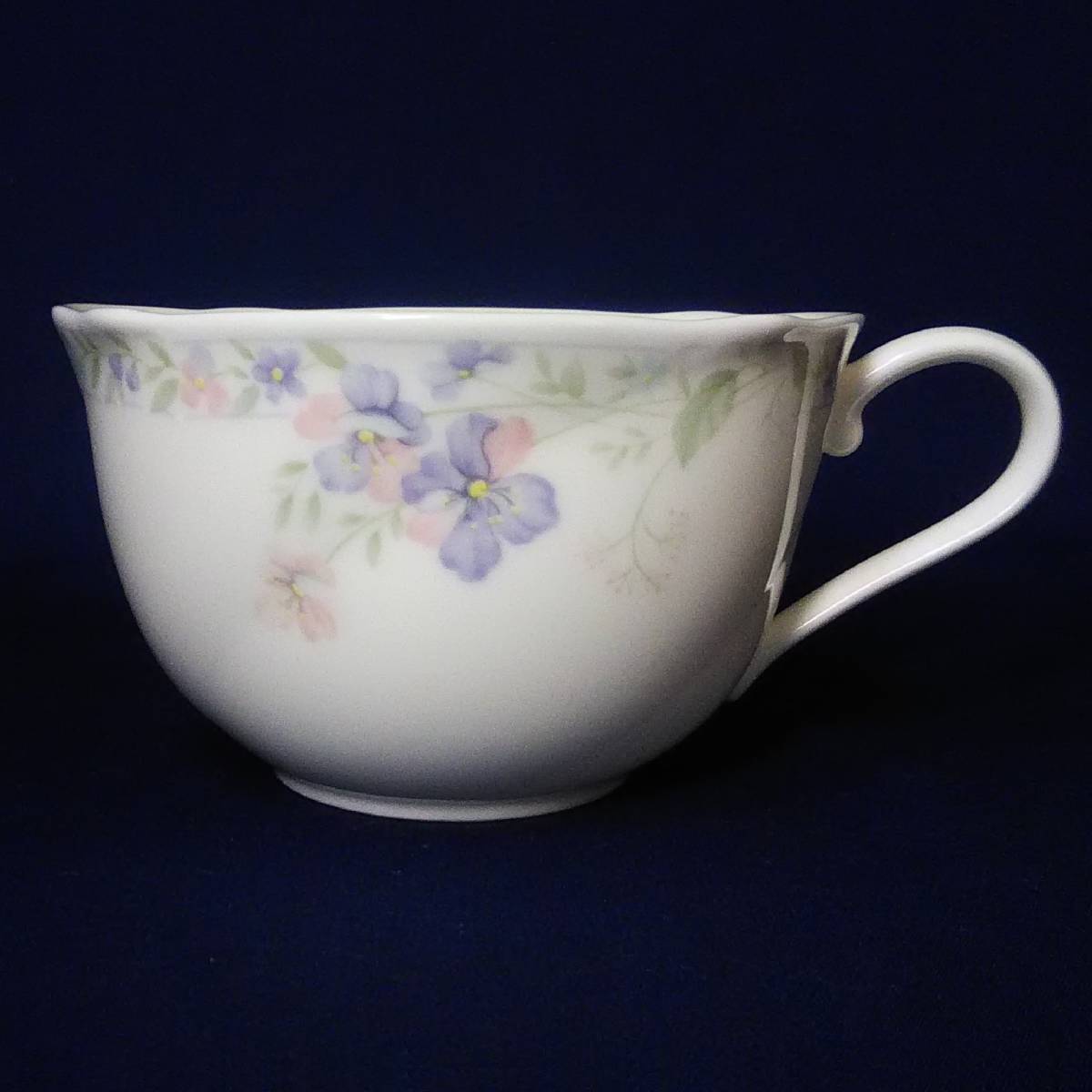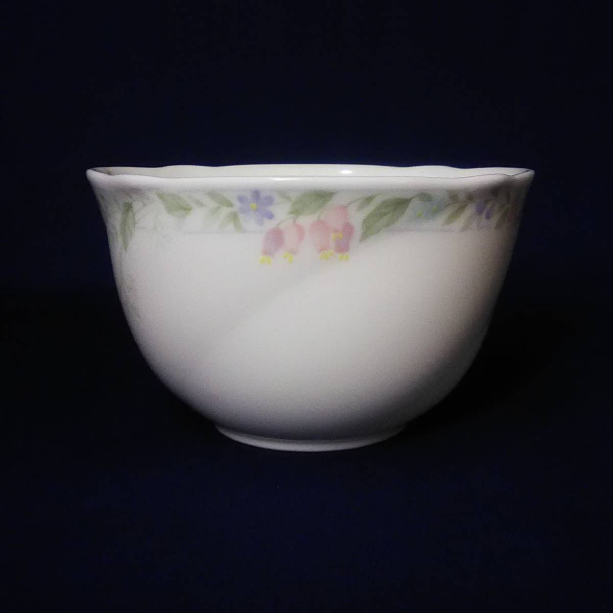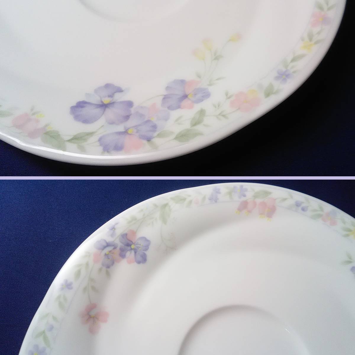 材質はボーンチャイナで、淡い花柄模様の可愛いデザインです。金メッキ等は使用されてません。