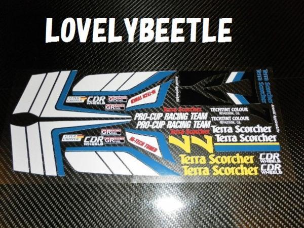 1/10 テラスコーチャー ビニールステッカーセットTB Terra Scorcher 4WD 4駆 タミヤ TAMIYA テラ スコーチャー用のビニールステッカーセットです。 当時の純正ステッカーよりも品質は向上しています。 テラスコーチャーのレストアにぜひご活用ください! カナダ製の1/10ラジコンカー用ビニールステッカーセット。 密着性バツグン。柔らかい素材のステッカーですので局面にもシワにならずに貼ること出来ちゃうスグレモノ。 防水仕様のステッカーなのでラジコンカーのボディ以外にも貼れちゃいます! ケータイ、タブレット、その他小物類、何でもOK! ■内容物■ 1・ステッカー 1シート ■うまく貼る方法(概略)■ 1・よく切れるはさみでマークを丁寧に切り取る。 (白フチつきのマークもあります。注意してカットしてください) 2・マークの端の紙を少しだけ剥がし、折りこむ(はがした紙をカットしてもOK)。 3・貼りたい部分にマークを当てて貼り付け位置を決め、少しだけ紙はがした部分でマークを固定。 4・空気が中に入らないように・・・「少し紙をはがしてはマークを圧着」の繰り返し。 ■注意事項■ 当ステッカーは密着性が高く、柔らかい素材で出来ています。 1回貼ってしまうと・・・はがすときにマークが伸びてしまう可能性あり。 貼り直しは極力やらないようにしてください。 未使用、新品ですが、輸入時からのかすかな擦り傷、汚れ、わずかなプリントのズレ等があるかもしれません。 ご質問等ございましたらRC戦車担当のラブリーさん(ツボイ)までお気軽にお問い合わせくださいませ。 ・090-8590-0643(ツボイ携帯) ・047-586-7792 ・メールアドレス n-e-o@cd.wakwak.com 破損パーツ、不足パーツがないかを念入りに検品してから発送致します。万が一、商品に不良箇所があった場合は責任をもって良品と交換させていただきます。 |