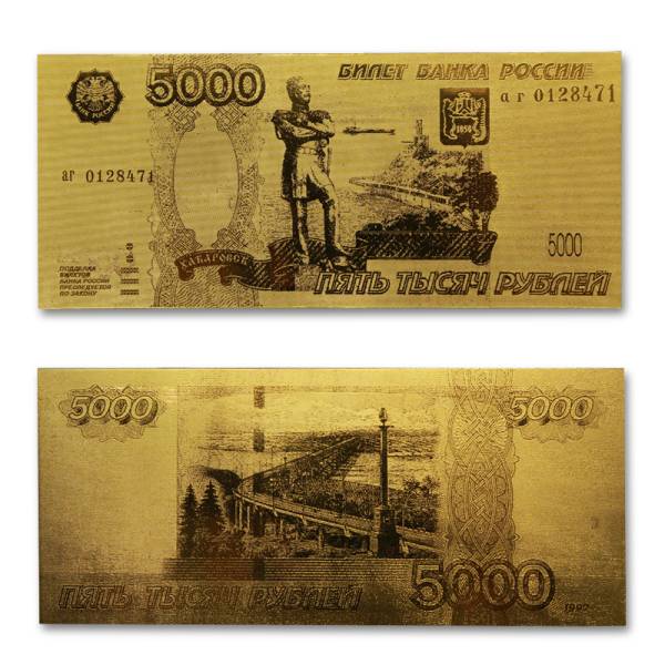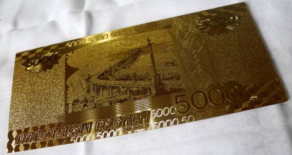 ☆純金の5000ルーブル札 ロシア 24金箔 金運UP 幸運ゾロ目 ソ連